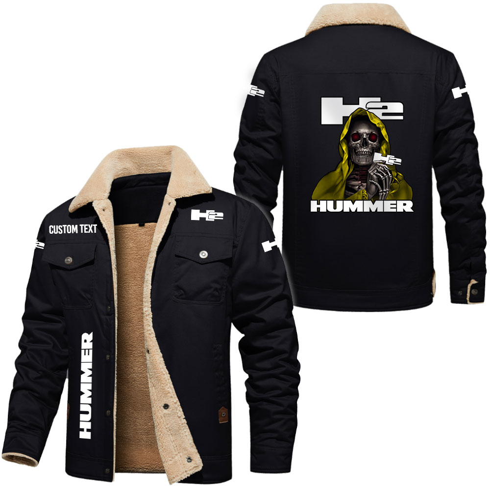Hummer H2 Logo Custom Name Cargo Fleece Lined Cotton Jacket Personalized Outerwear with Skull Design
