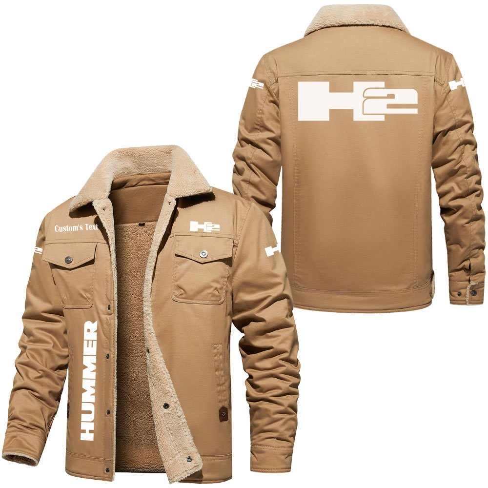 Hummer H2 Logo Custom Text Cargo Fleece Lined Cotton Jacket