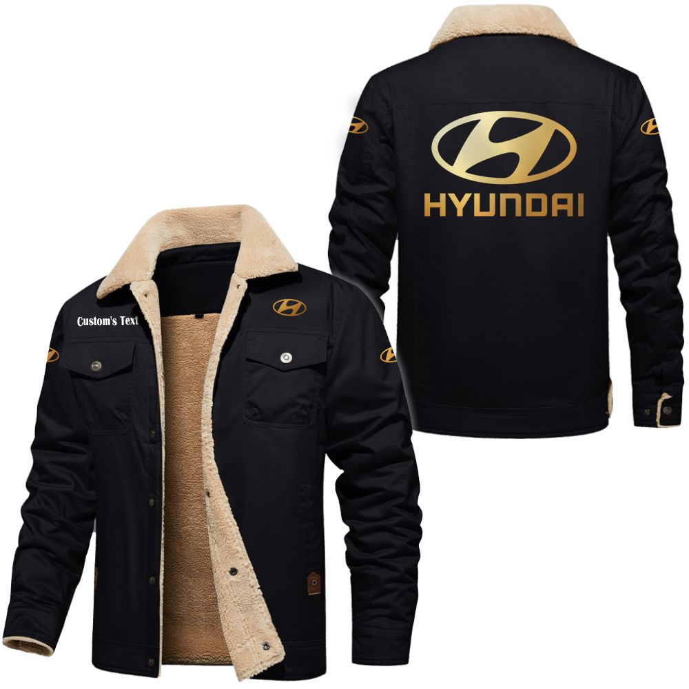 Hyundai Golden Logo Custom Cargo Fleece Lined Cotton Jacket Black