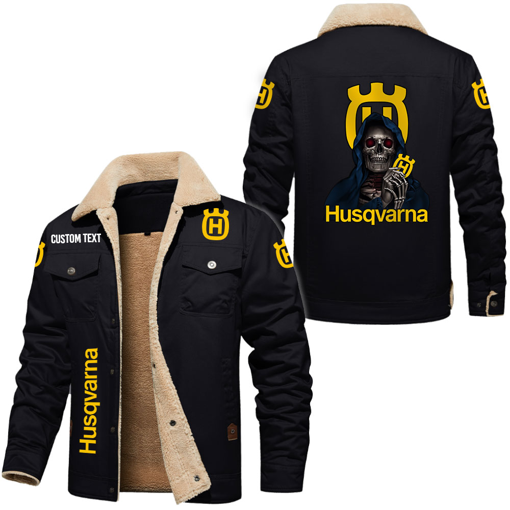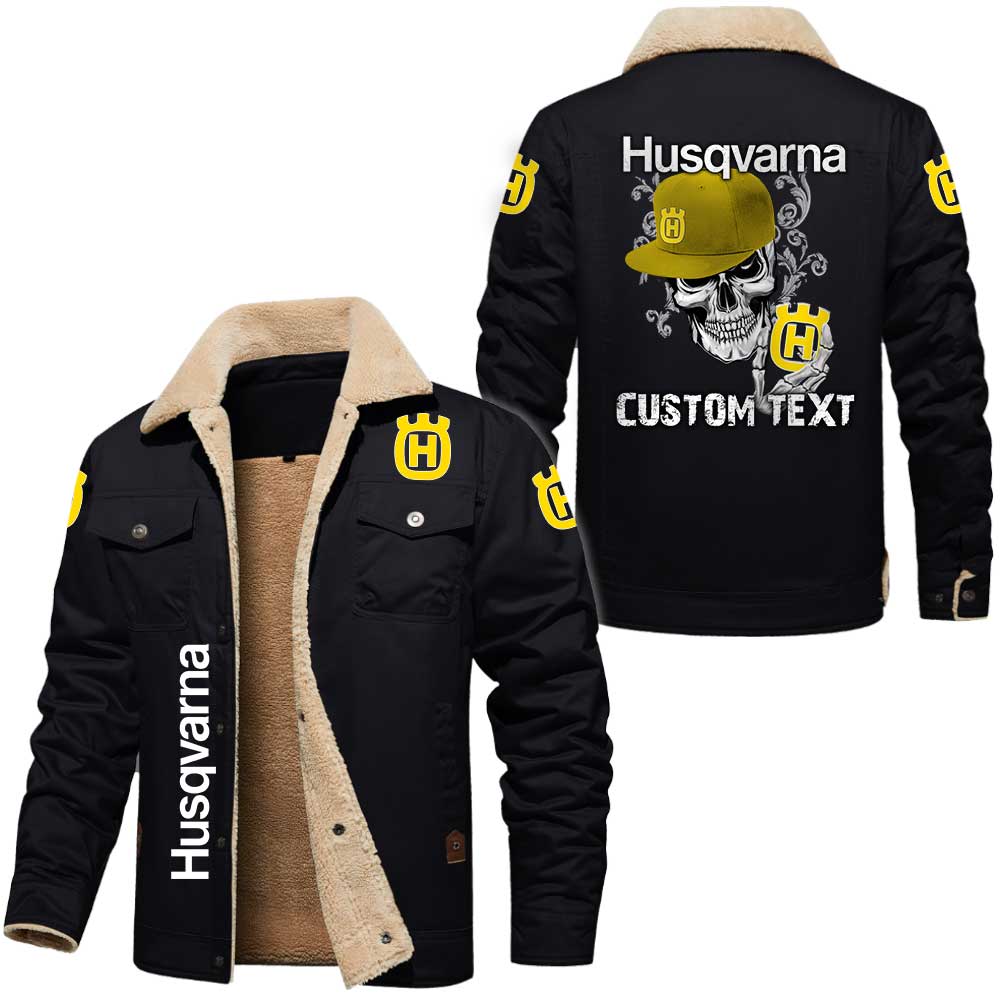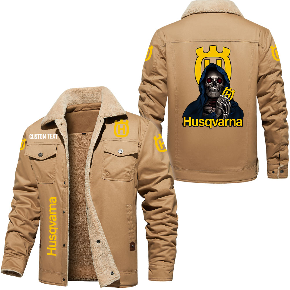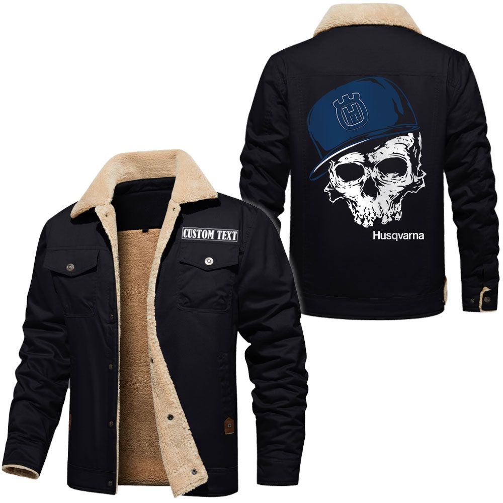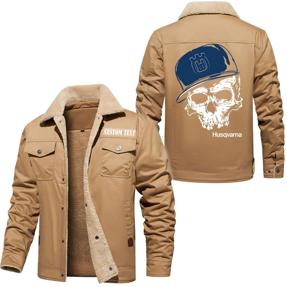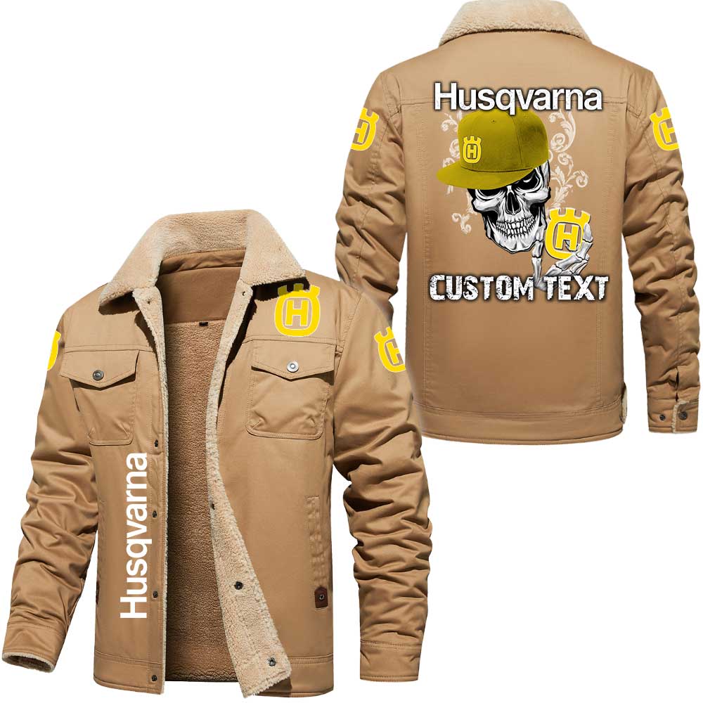 Husqvarna Logo Custom Name Cargo Fleece Lined Cotton Jacket Personalized Outerwear with Skull Design
