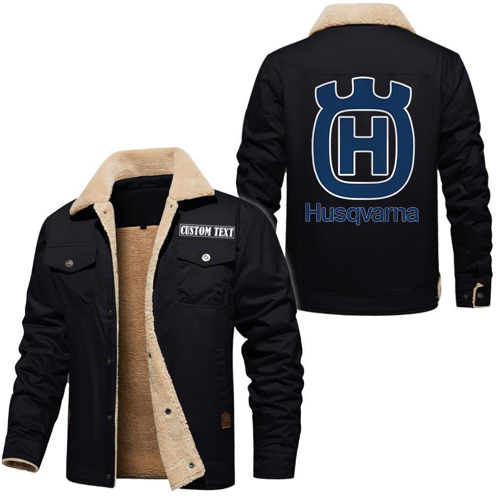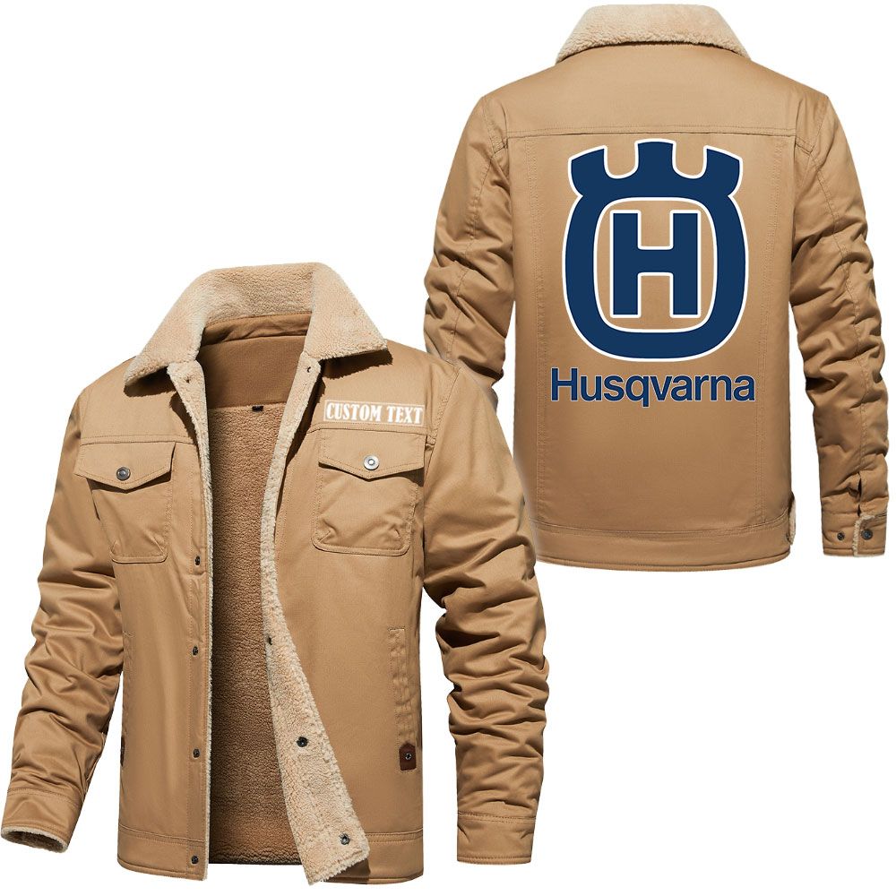 Husqvarna Logo Custom Name Cargo Fleece Lined Cotton Jacket Stylish Warm Personalized Outerwear