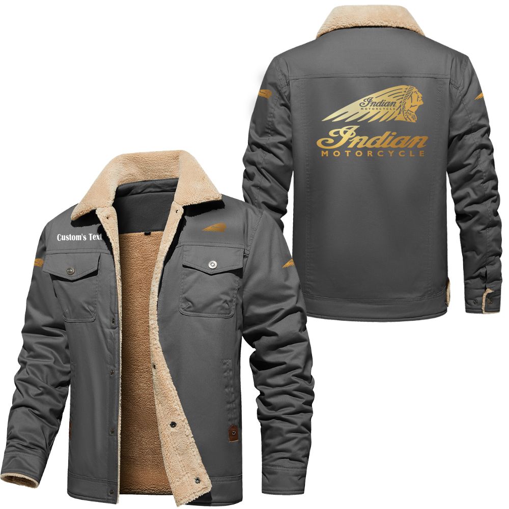 indian Golden Logo Custom Cargo Fleece Lined Cotton Jacket Dark Grey
