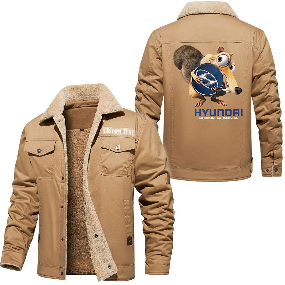 Hyundai Logo Custom Name Cargo Fleece Lined Cotton Jacket Scrat Ice Age Design Personalized Outerwear
