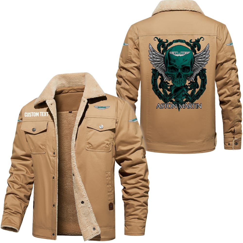 Aston Martin Custom Name Skull Design Cargo Fleece Lined Cotton Jacket