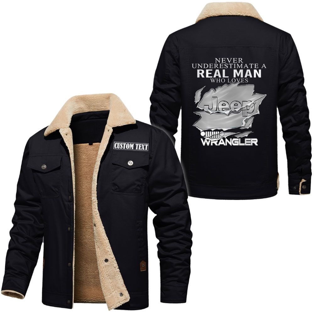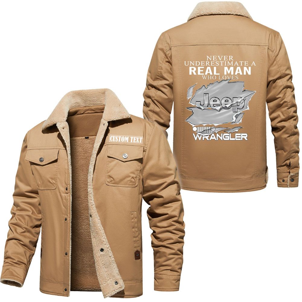 Jeep wrangler Logo Custom Name Cargo Fleece Lined Cotton Jacket A Real Man Who Loves Personalized Outerwear