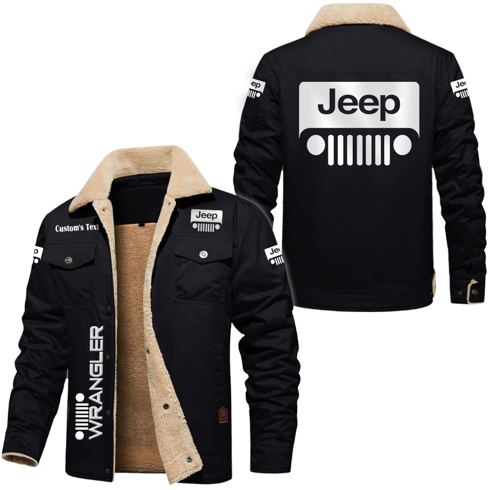 Jeep Wrangler Logo Custom Text Cargo Fleece Lined Cotton Jacket