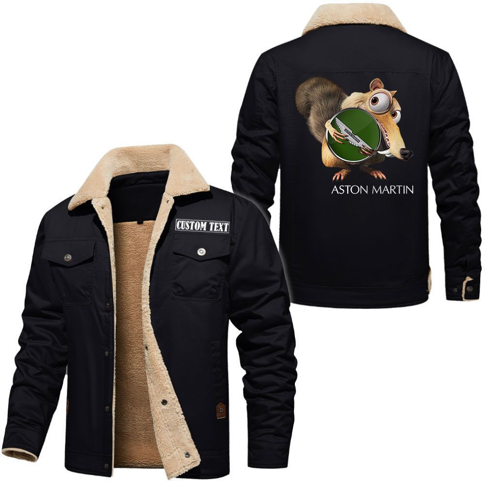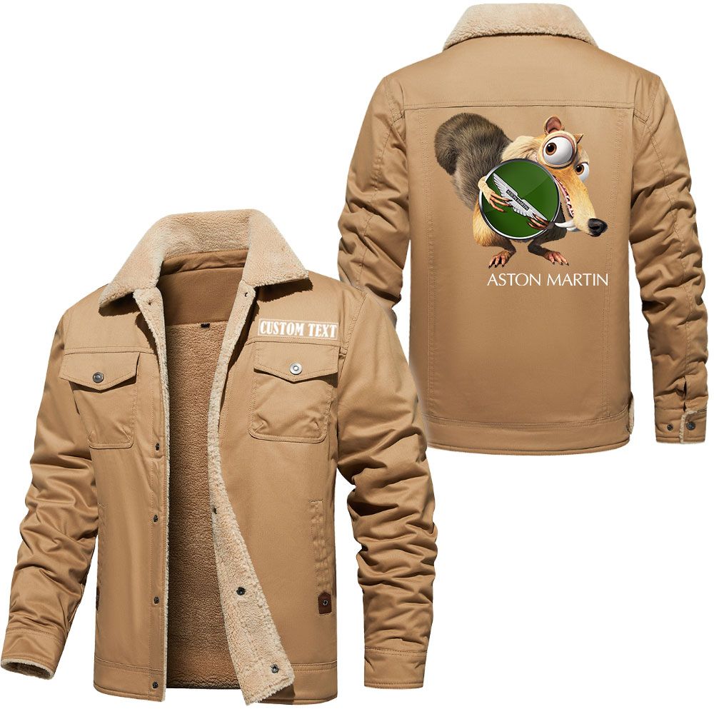 Aston Martin Logo Custom Name Cargo Fleece Lined Cotton Jacket Scrat Ice Age Design Personalized Outerwear