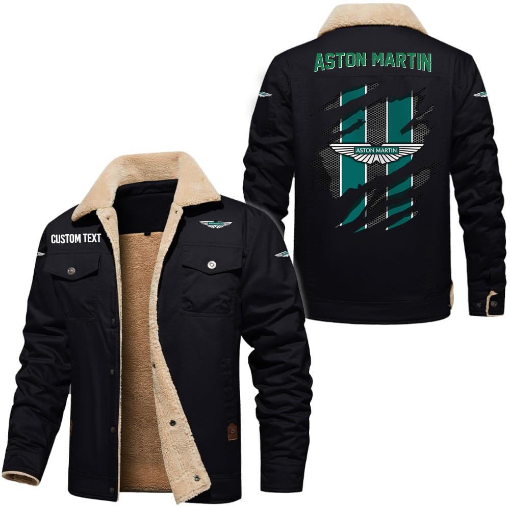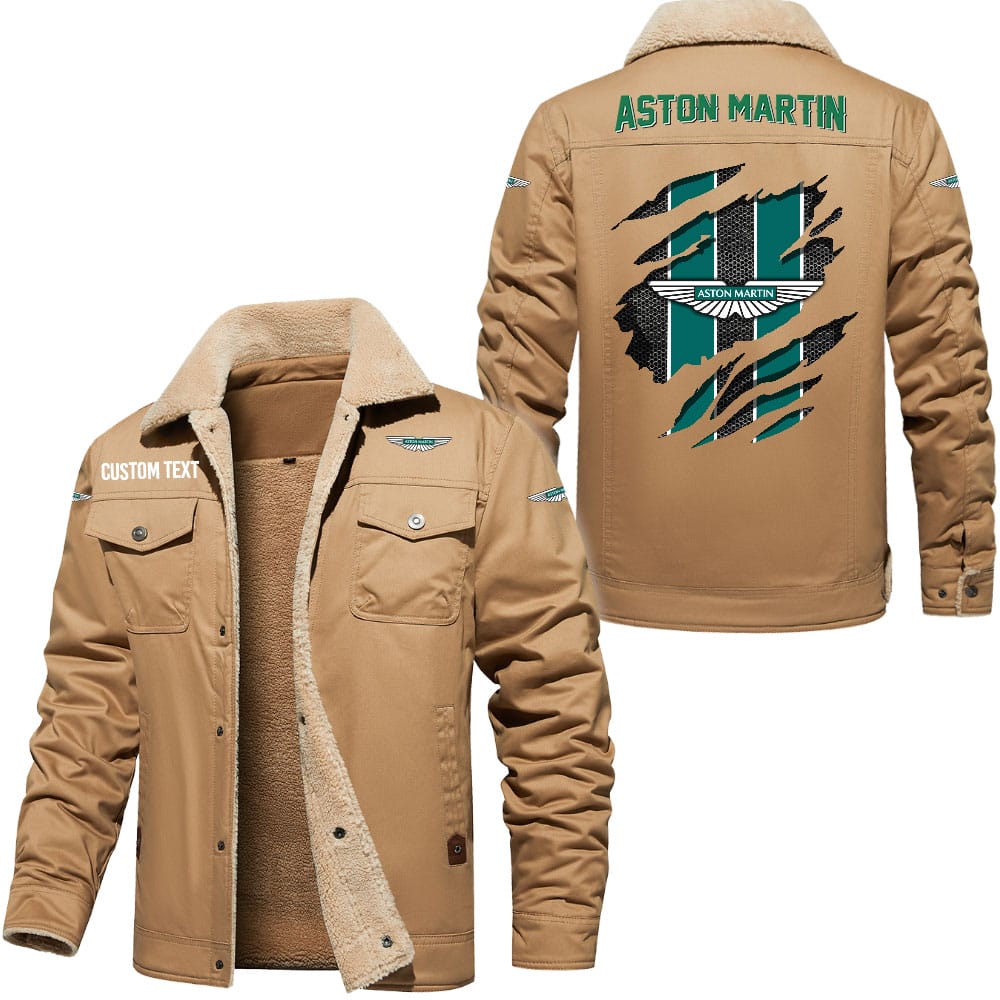 Aston Martin Logo Custom Text Cargo Fleece Lined Cotton Jacket