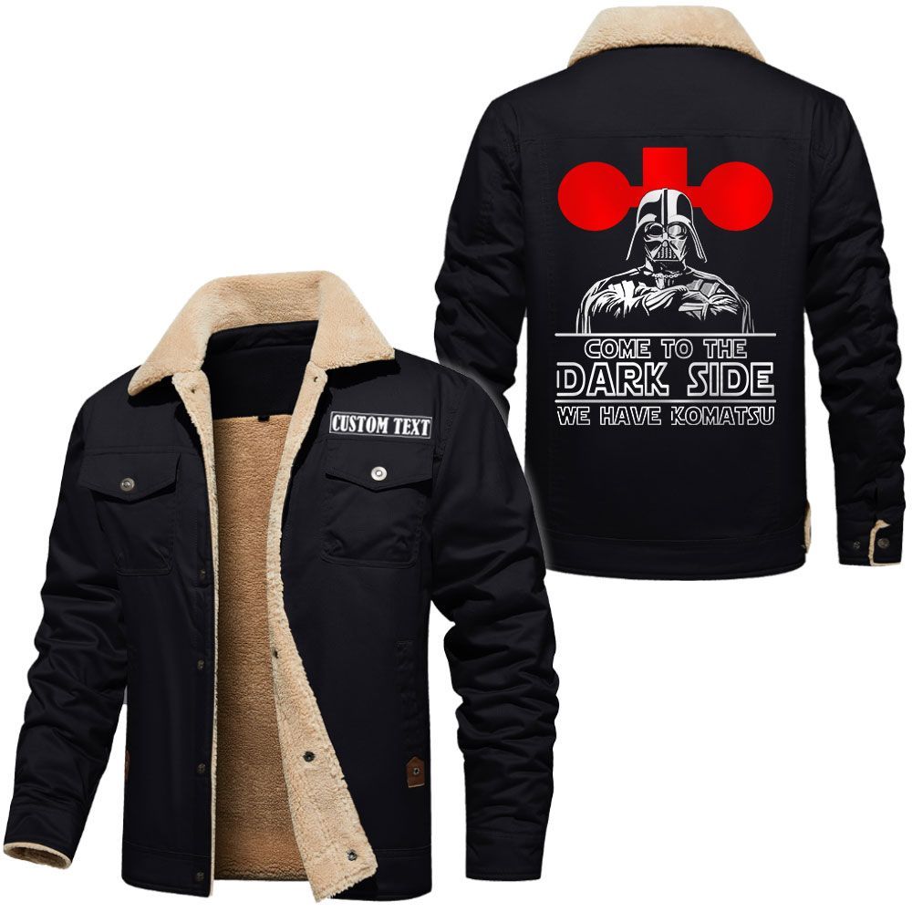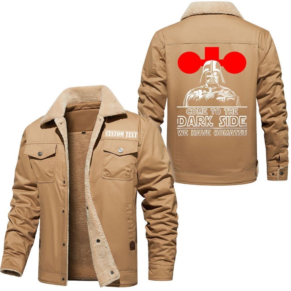 Komatsu Logo Custom Name Cargo Fleece Lined Cotton Jacket Personalized Outerwear with Dark Side Star Wars Design