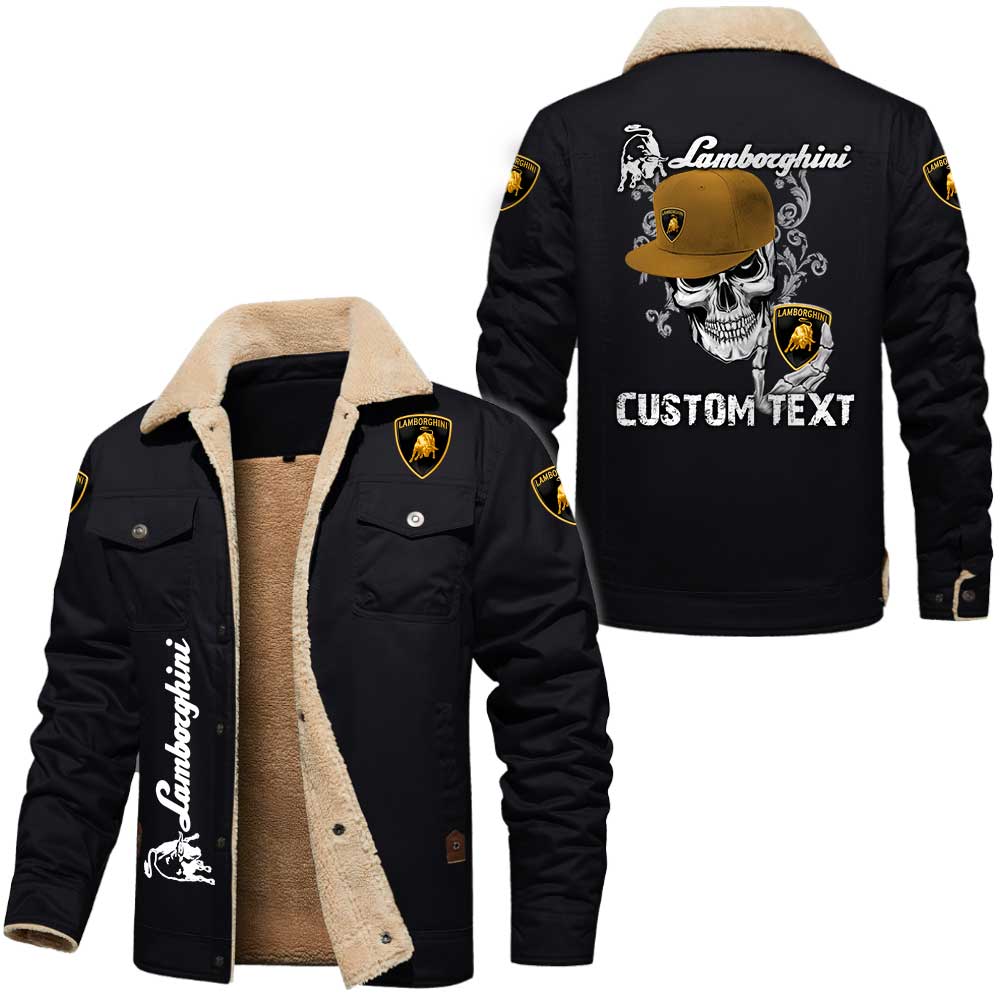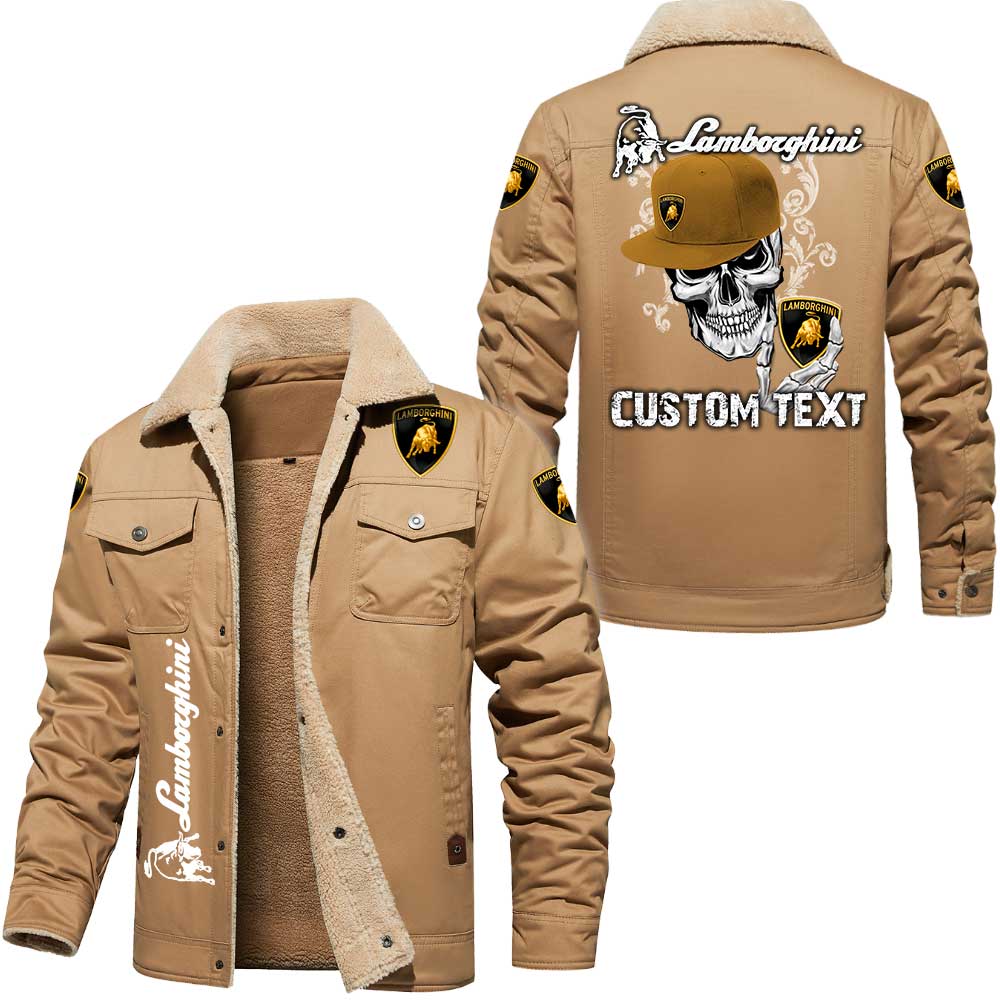 Lamborghini Skull Custom Name Cargo Fleece Lined Cotton Jacket
