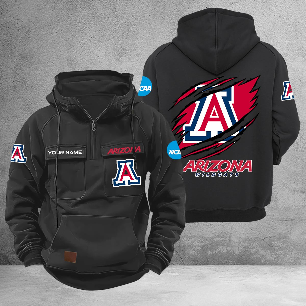 Arizona Wildcats Cargo Multi-Pockets Zip Up Hoodie