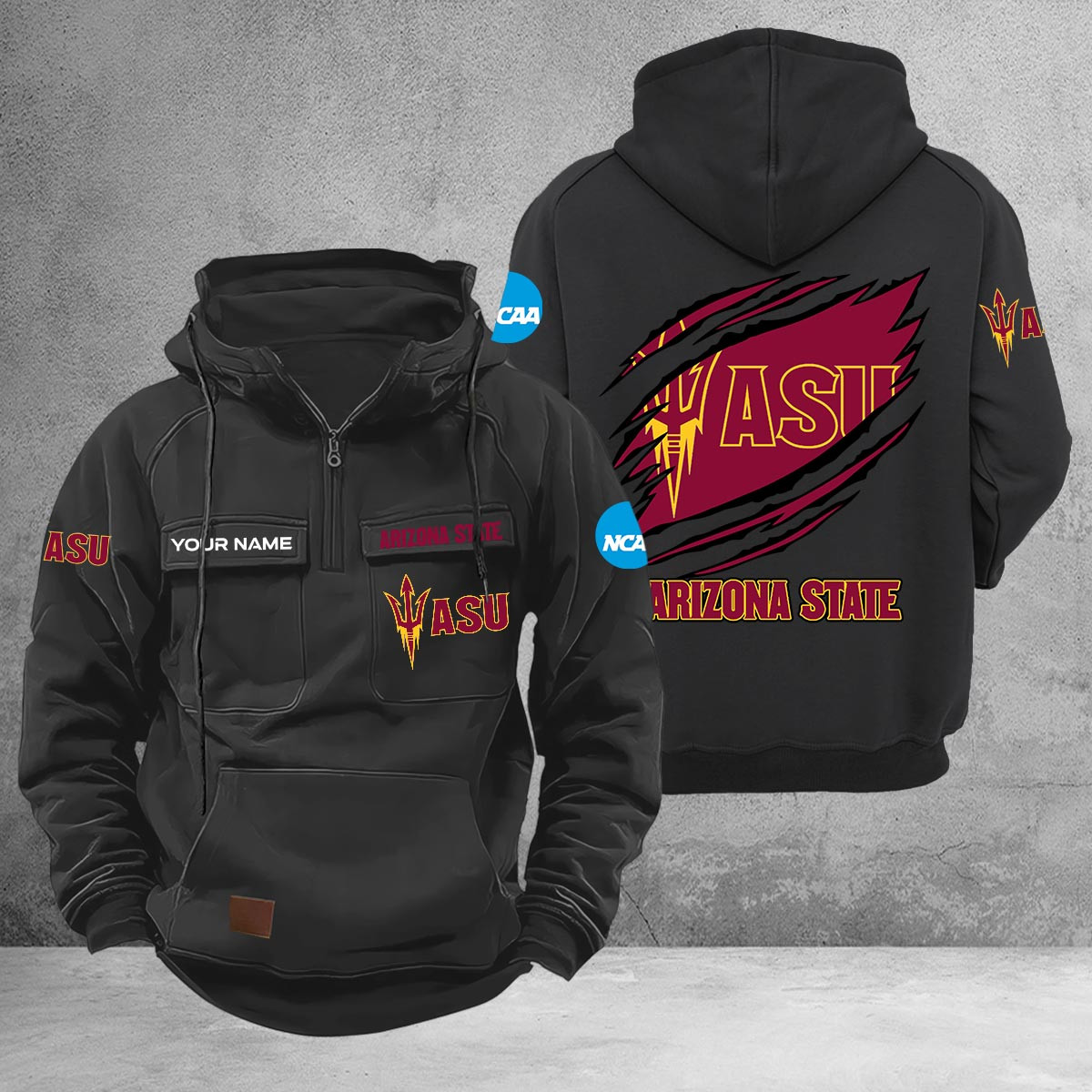 Arizona State Sun Devils Cargo Multi-Pockets Zip Up Hoodie