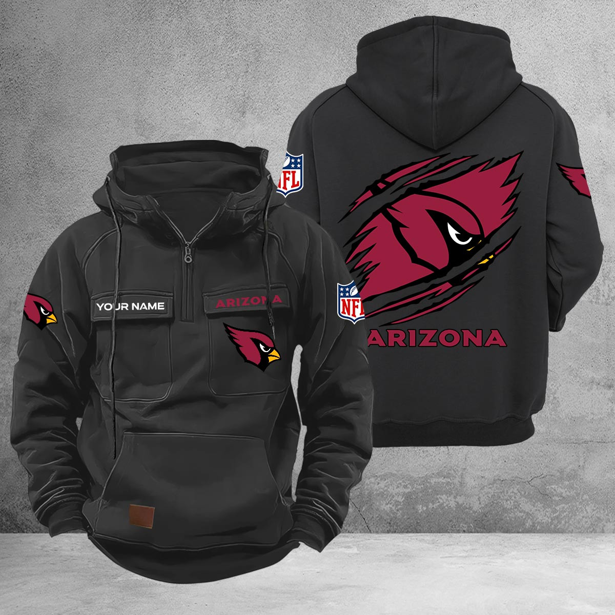 Arizona Cardinals Cargo Multi-Pockets Zip Up Hoodie