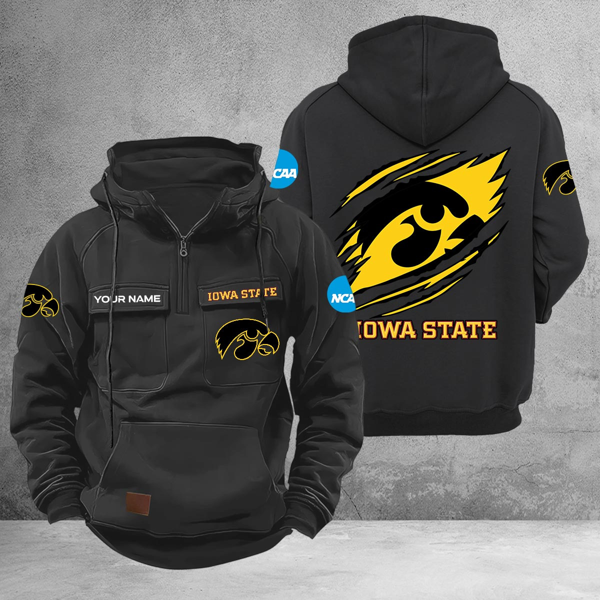 lowa State Cyclones Cargo Multi-Pockets Zip Up Hoodie