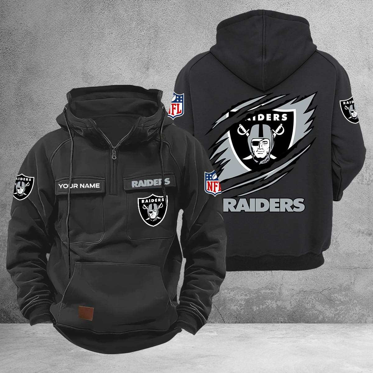 Las Vegas Raiders Cargo Multi-Pockets Zip Up Hoodie