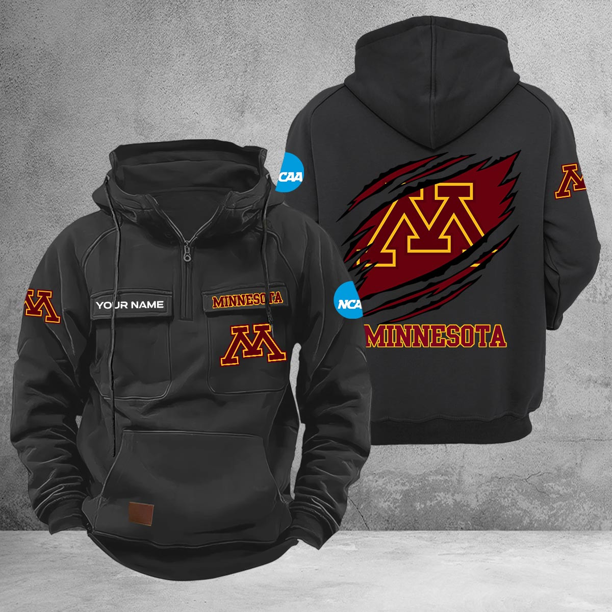 Minnesota Golden Gophers Cargo Multi-Pockets Zip Up Hoodie