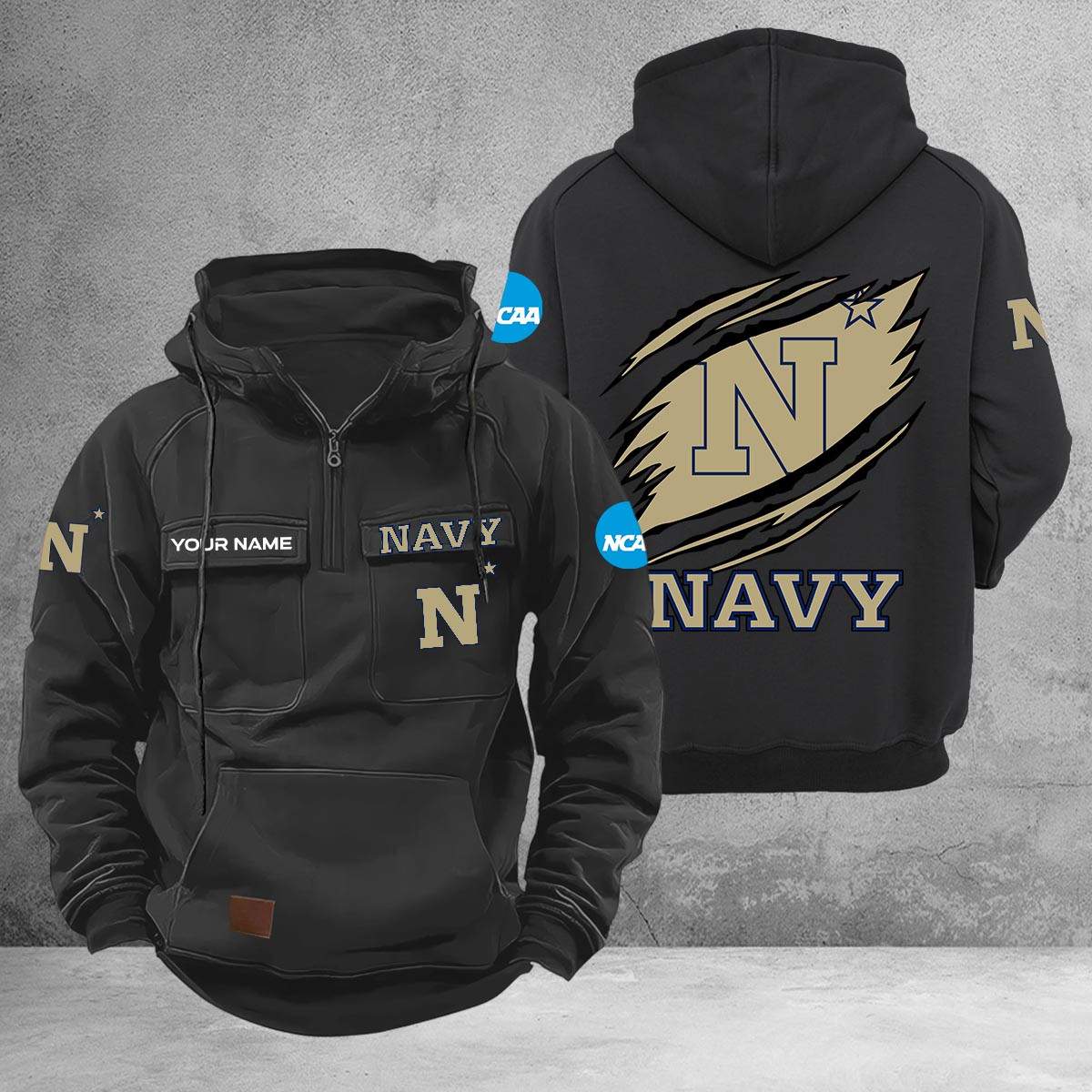 Navy Midshipmen Cargo Multi-Pockets Zip Up Hoodie