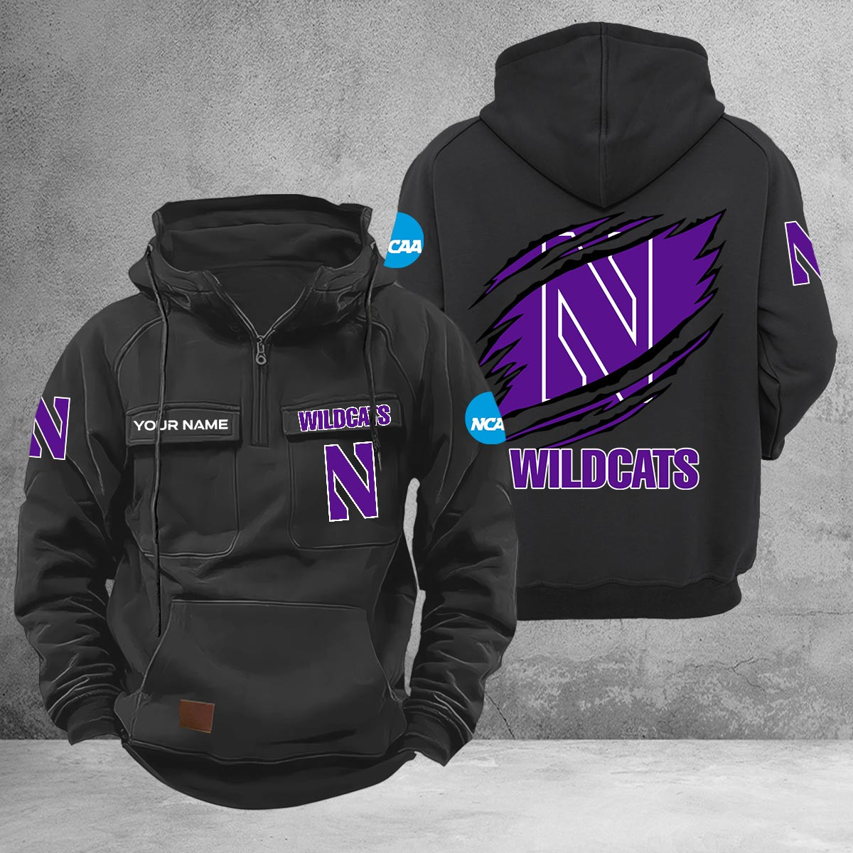 Northwestern Wildcats Cargo Multi-Pockets Zip Up Hoodie