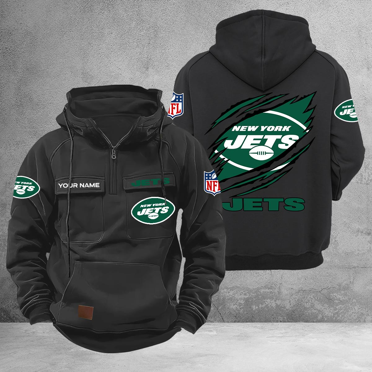 New York Jets Cargo Multi-Pockets Zip Up Hoodie