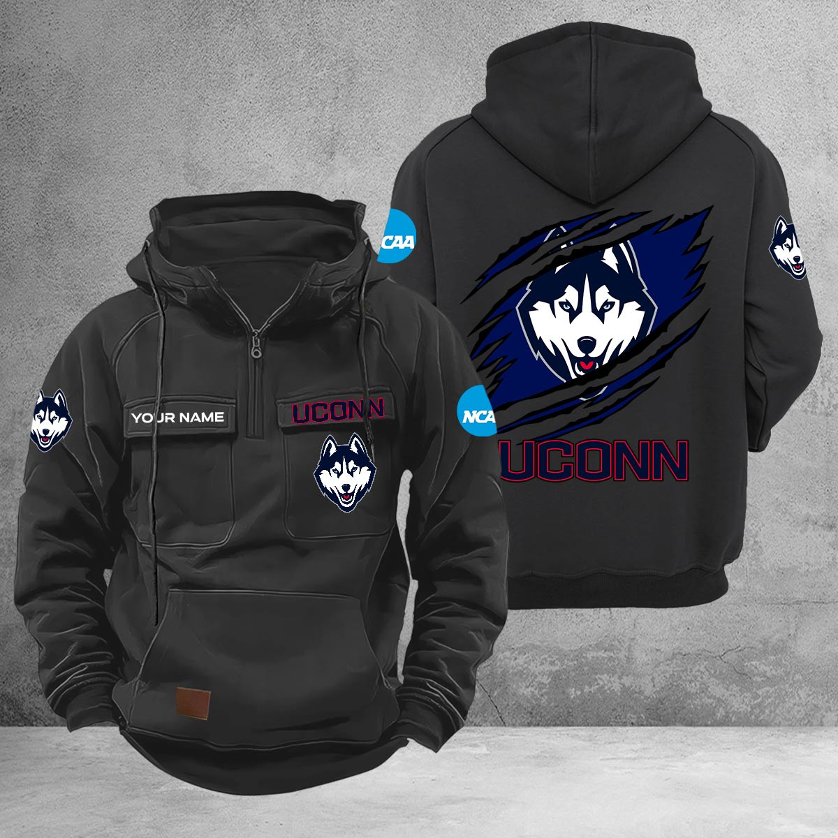 Uconn Huskies Cargo Multi-Pockets Zip Up Hoodie
