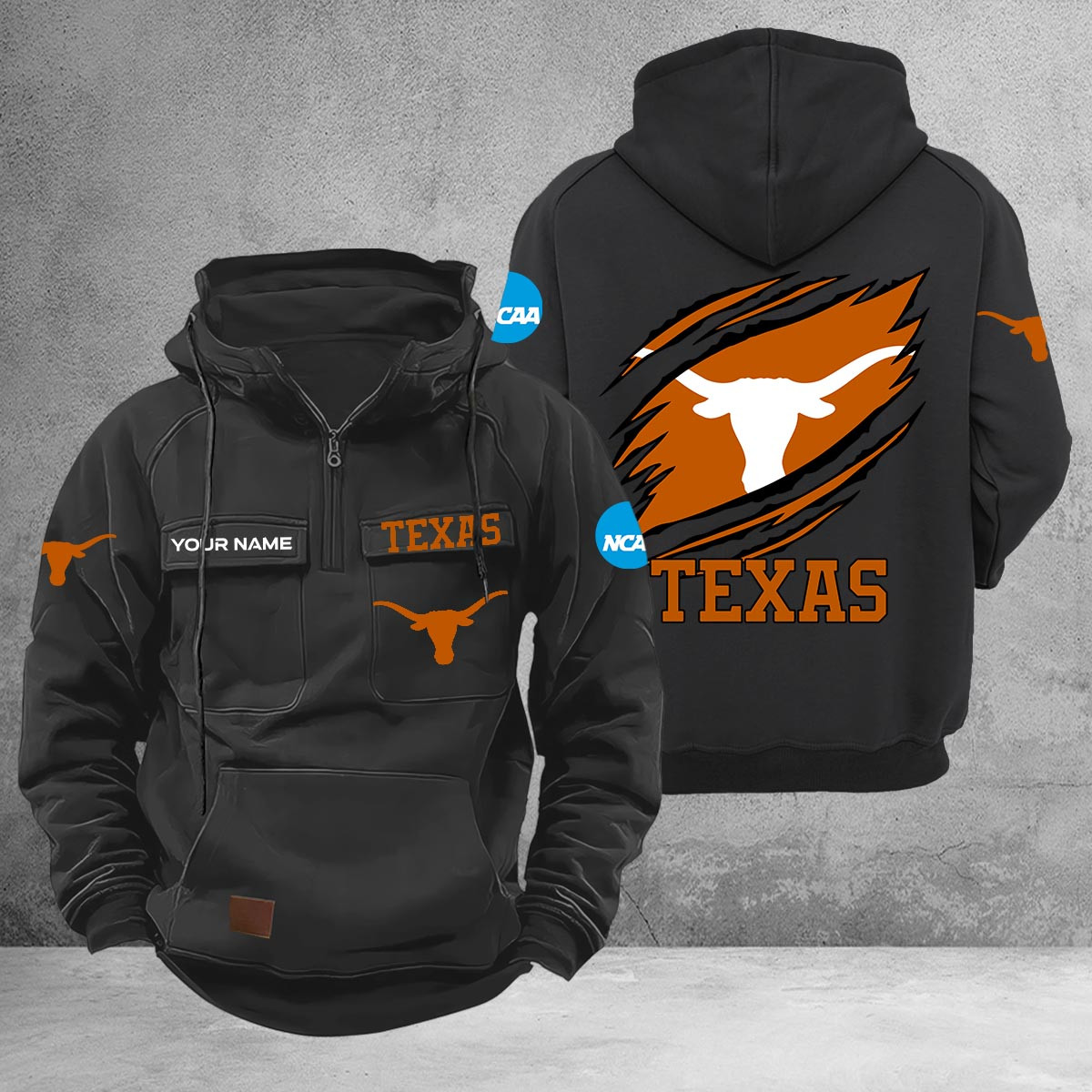 Texas Longhorns Cargo Multi-Pockets Zip Up Hoodie