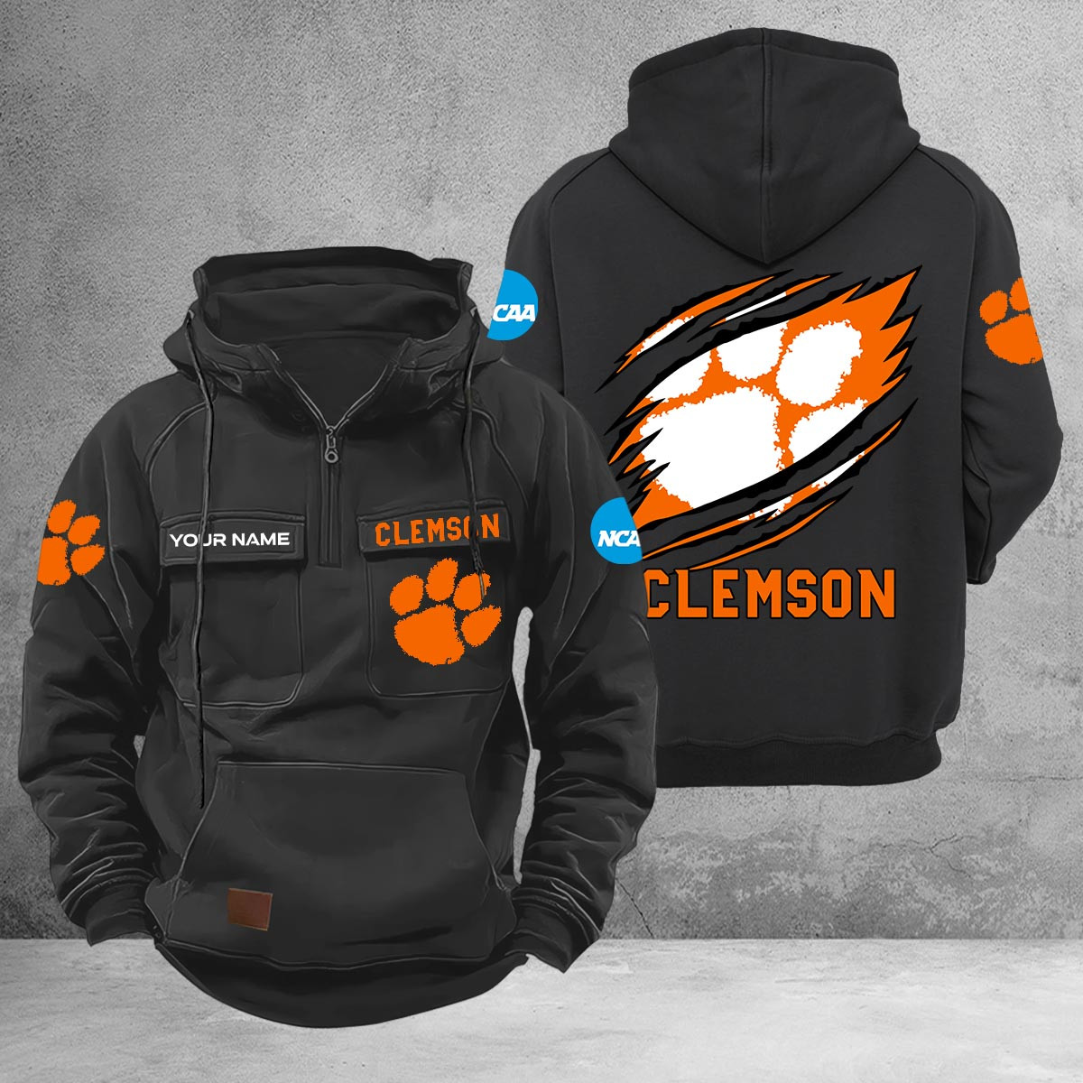 Clemson Tigers Cargo Multi-Pockets Zip Up Hoodie