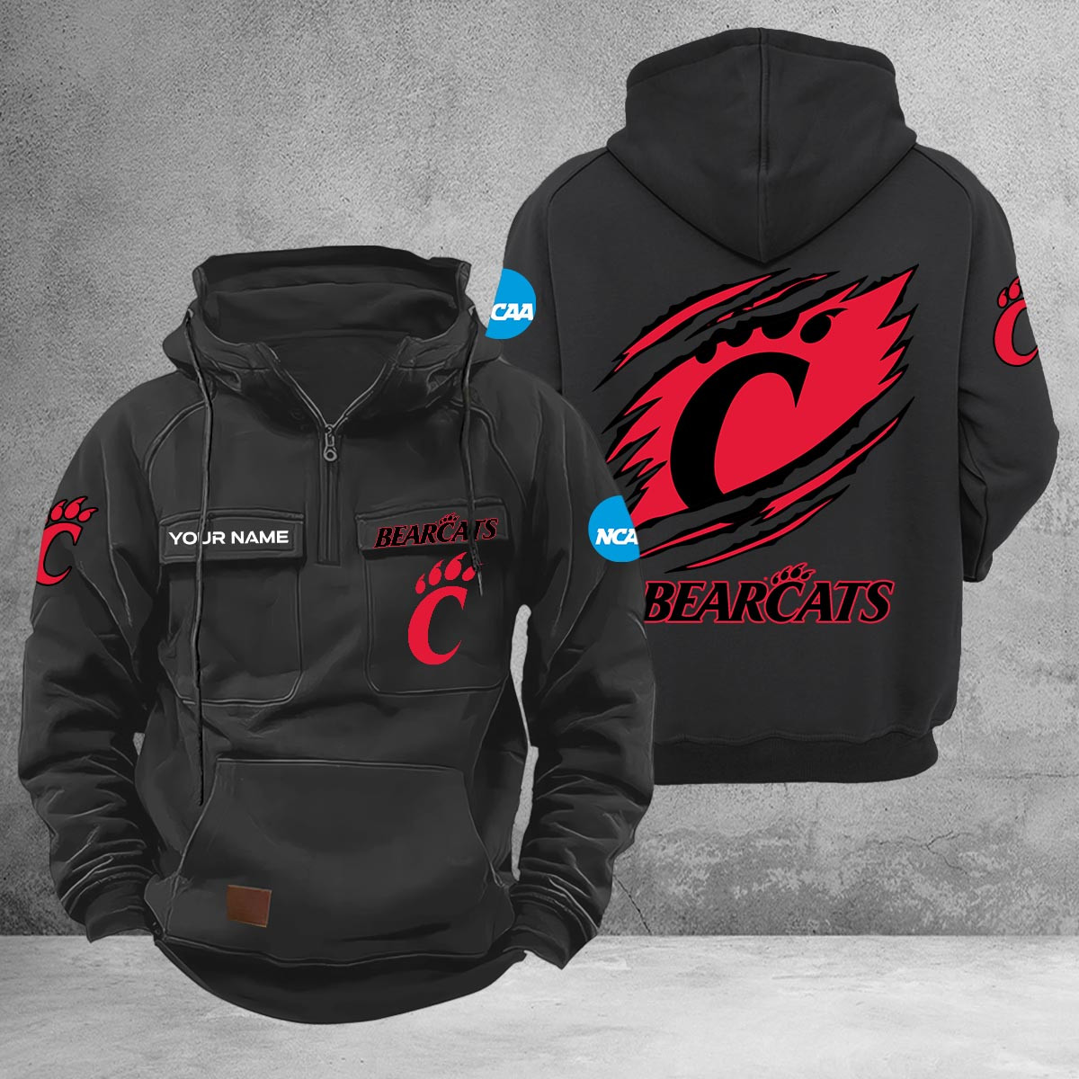 Cincinnati Bearcats Cargo Multi-Pockets Zip Up Hoodie