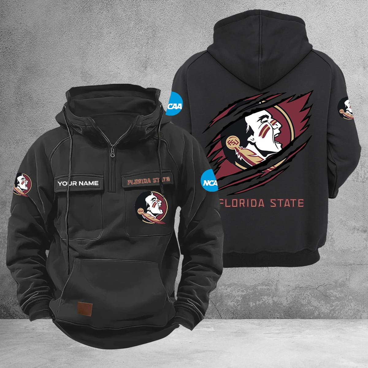 Florida State Seminoles Cargo Multi-Pockets Zip Up Hoodie