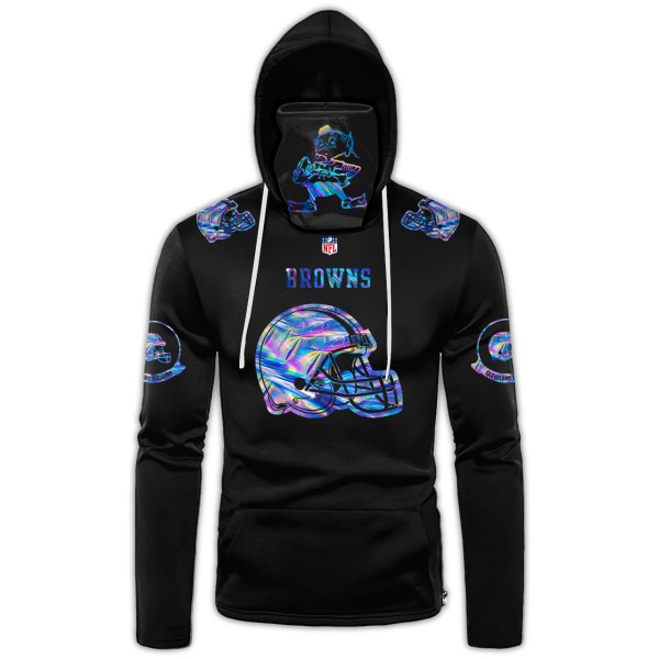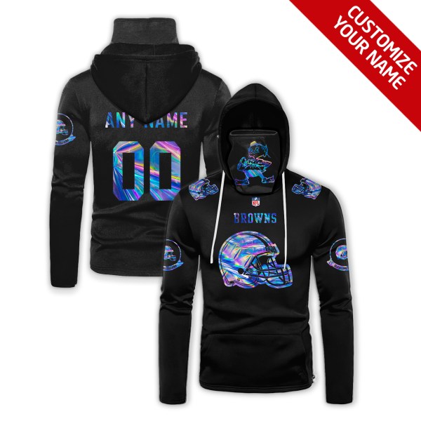 Personalized Cleveland Browns Nfl Black Hologram Custom 3D Hoodie Mask