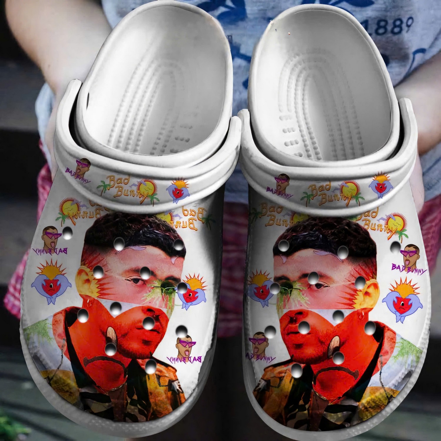 Bad Bunny And Tatoo Big Heart Crocs Print White Sole
