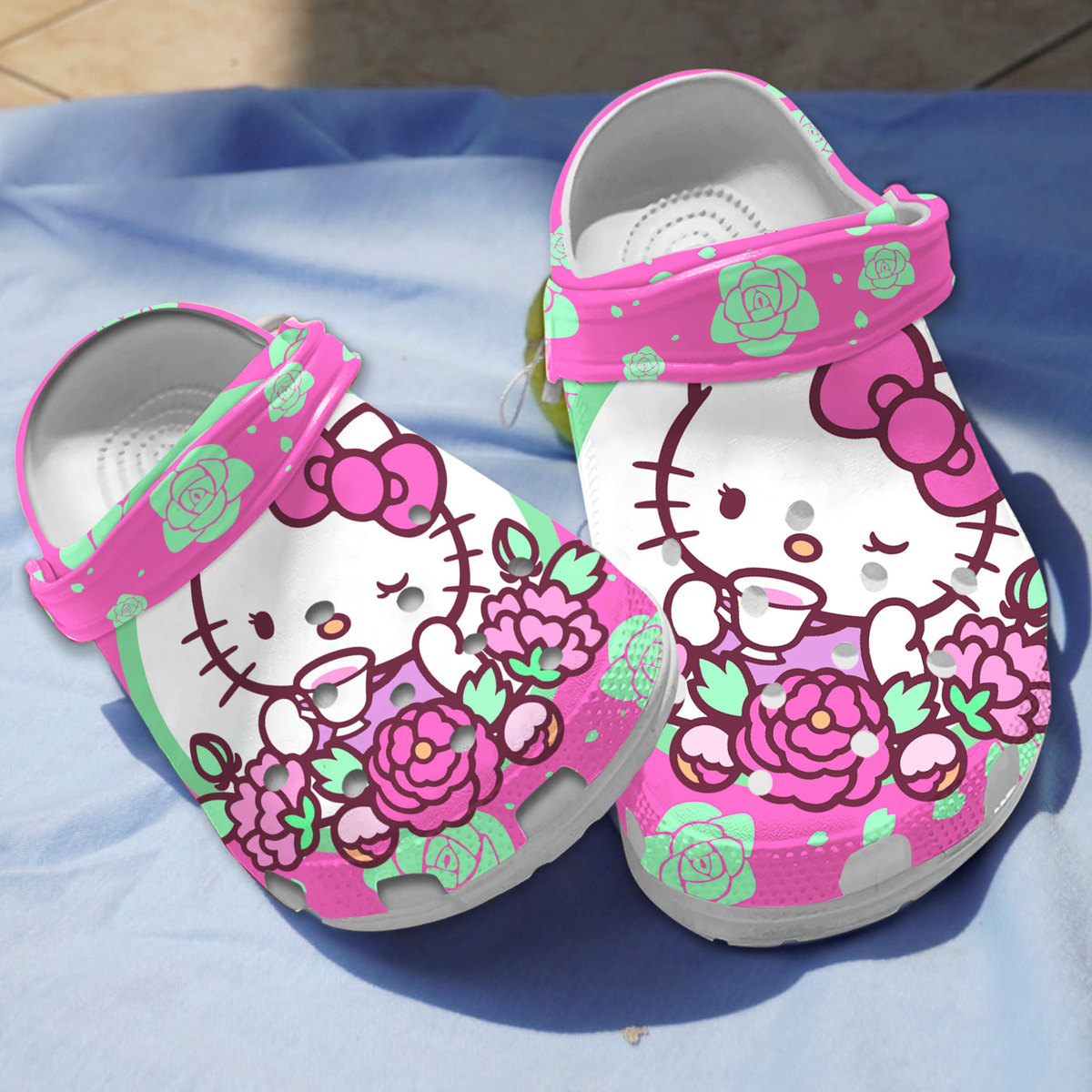 Beautiful Hello Kitty And Colorful Roses Crocs Comfortable For Kids And Adults