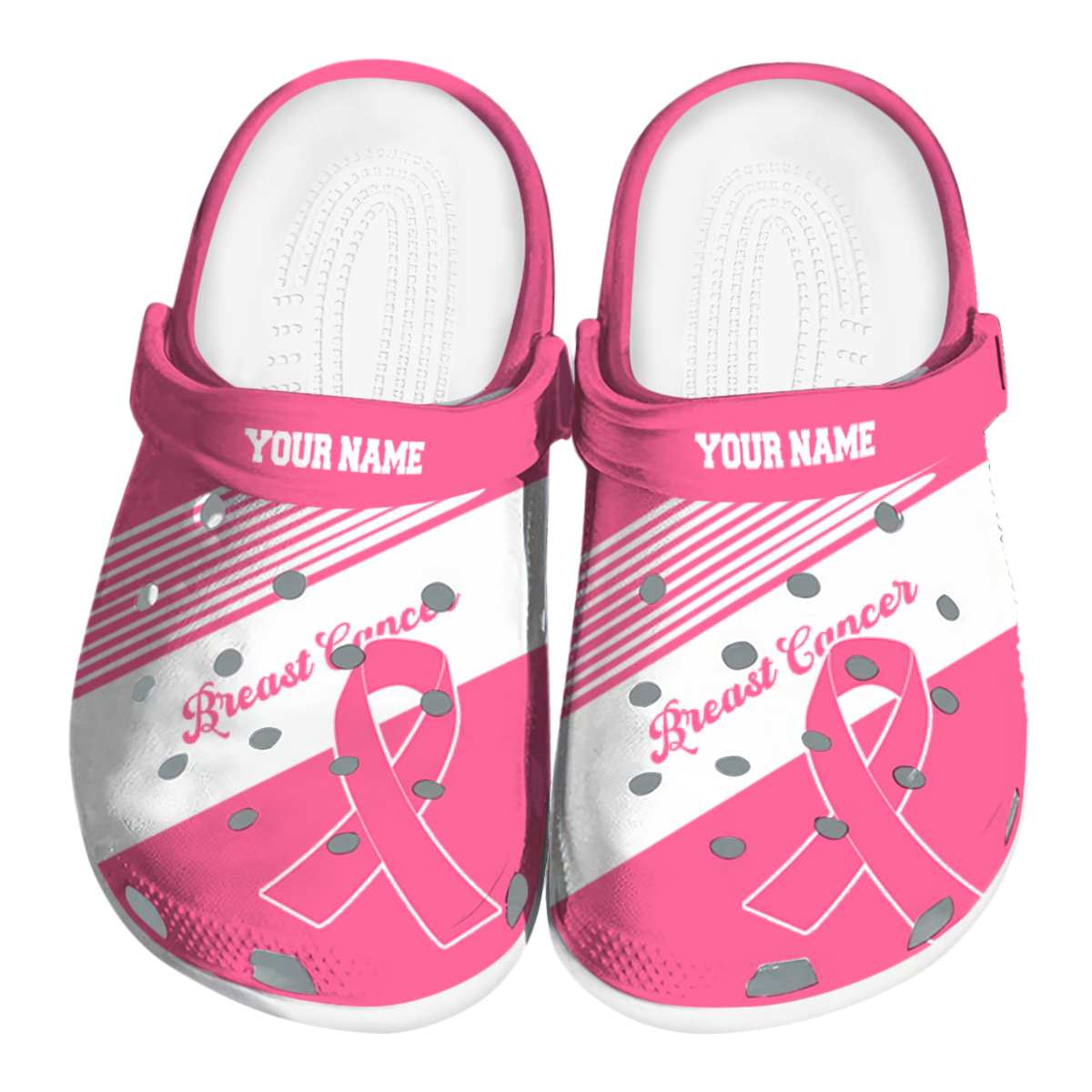 Breast Cancer Striped Accents Crocs Personalized For Men Women Kids