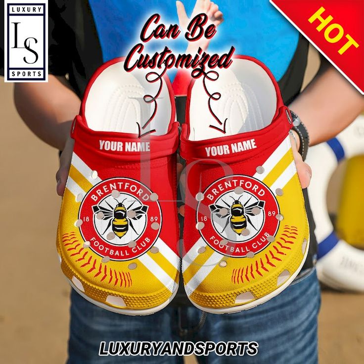 Brentford FC Individueller Name Rot Gelb Crocs Personalized Fan Shoes