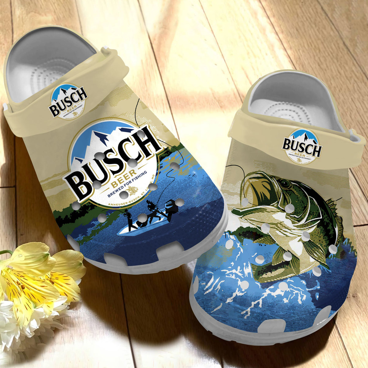 Busch Beer And Fishing Crocs Printed White Sole For Men And Women Classic Crocs