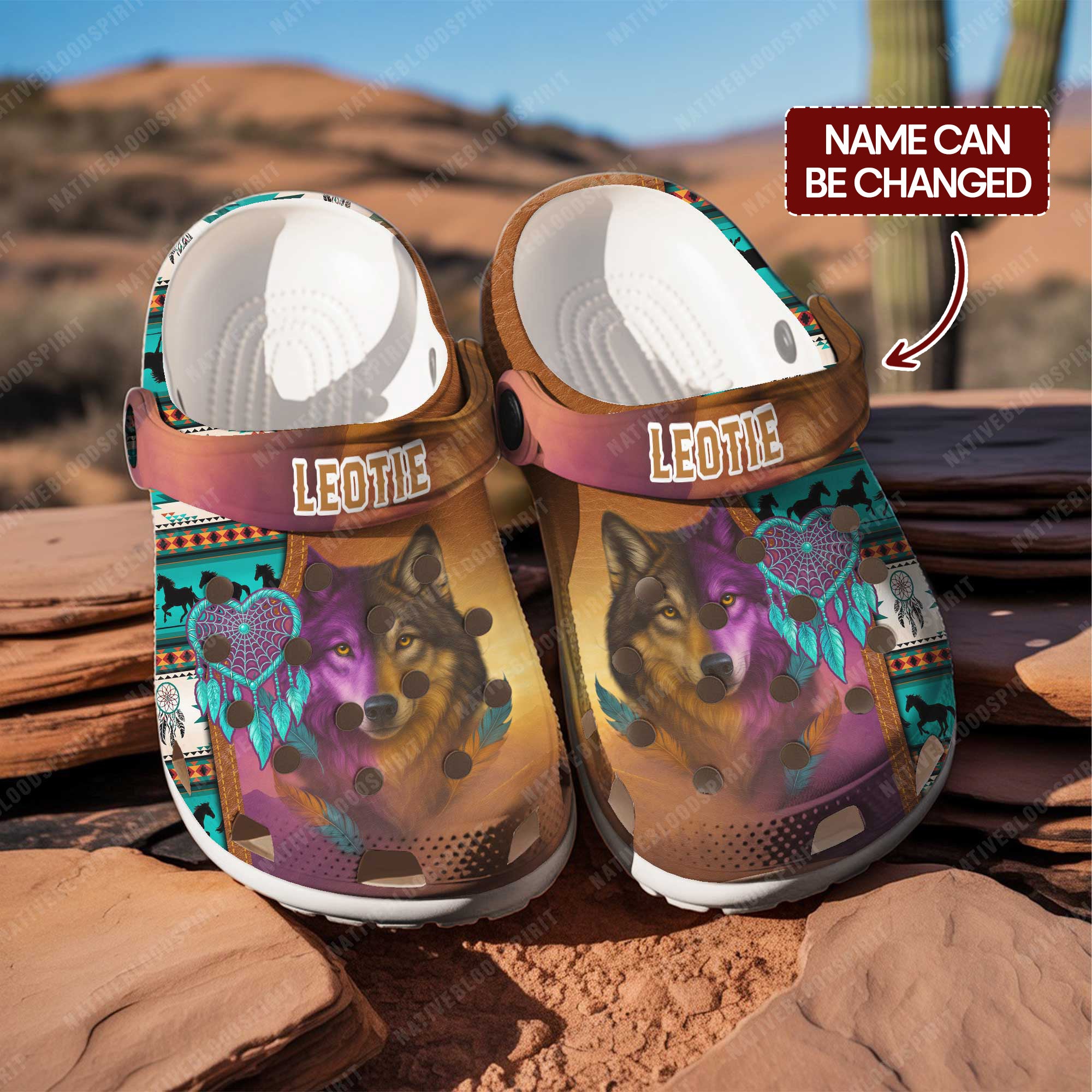 Wolf And Dream Catcher Native Violet Clogs Available