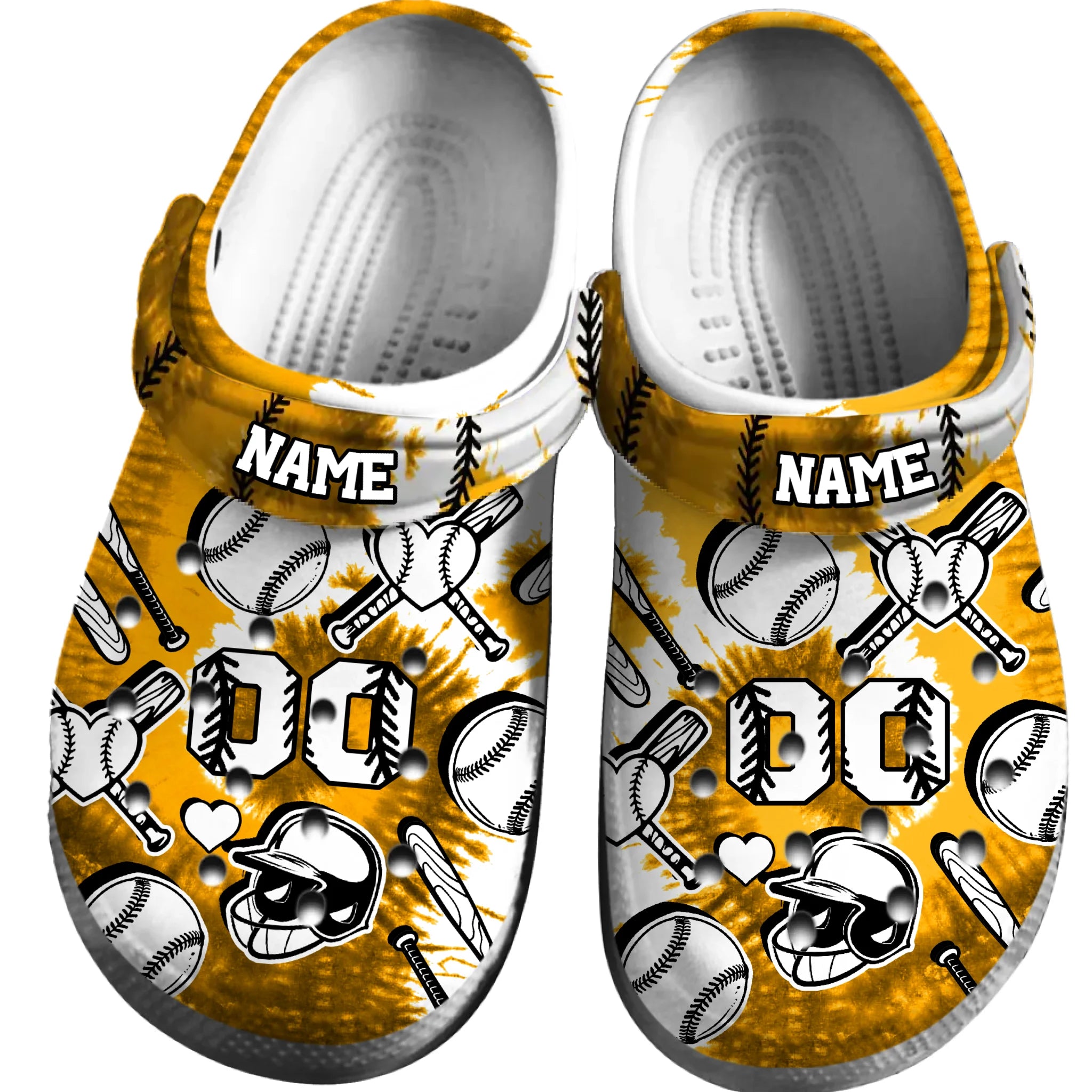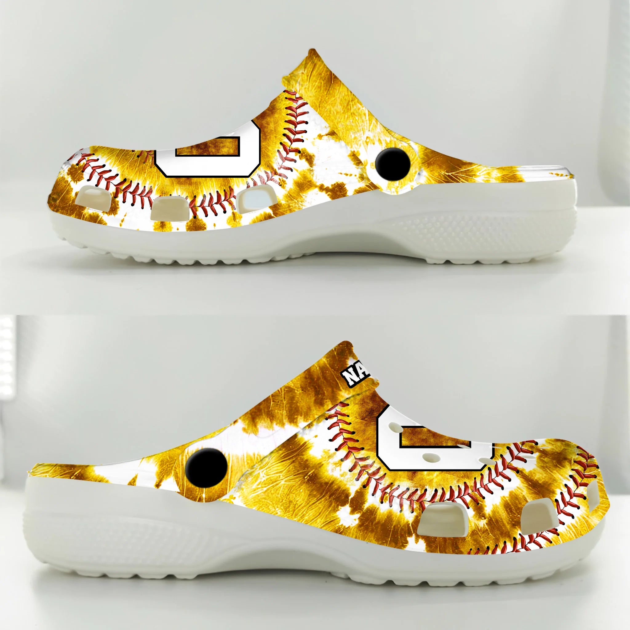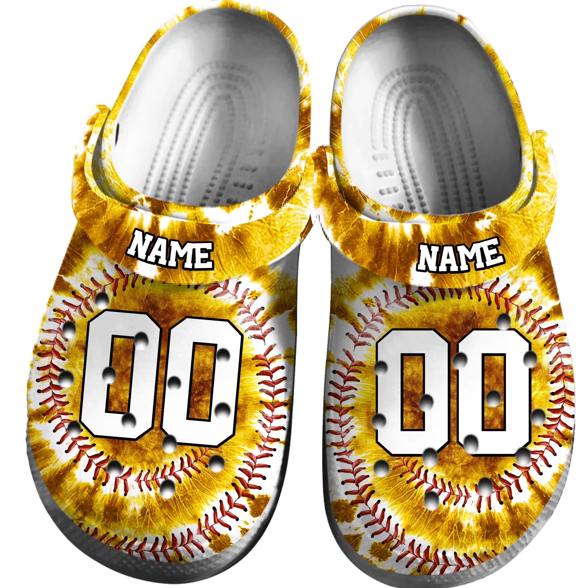 Yellow Tie-Dye Baseball Sport Custom Crocs And Clogs Shoes Printed For Men Women And Kids