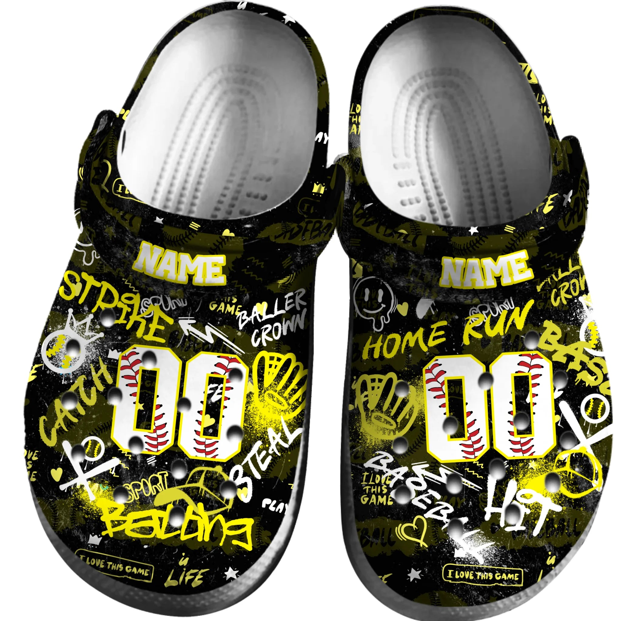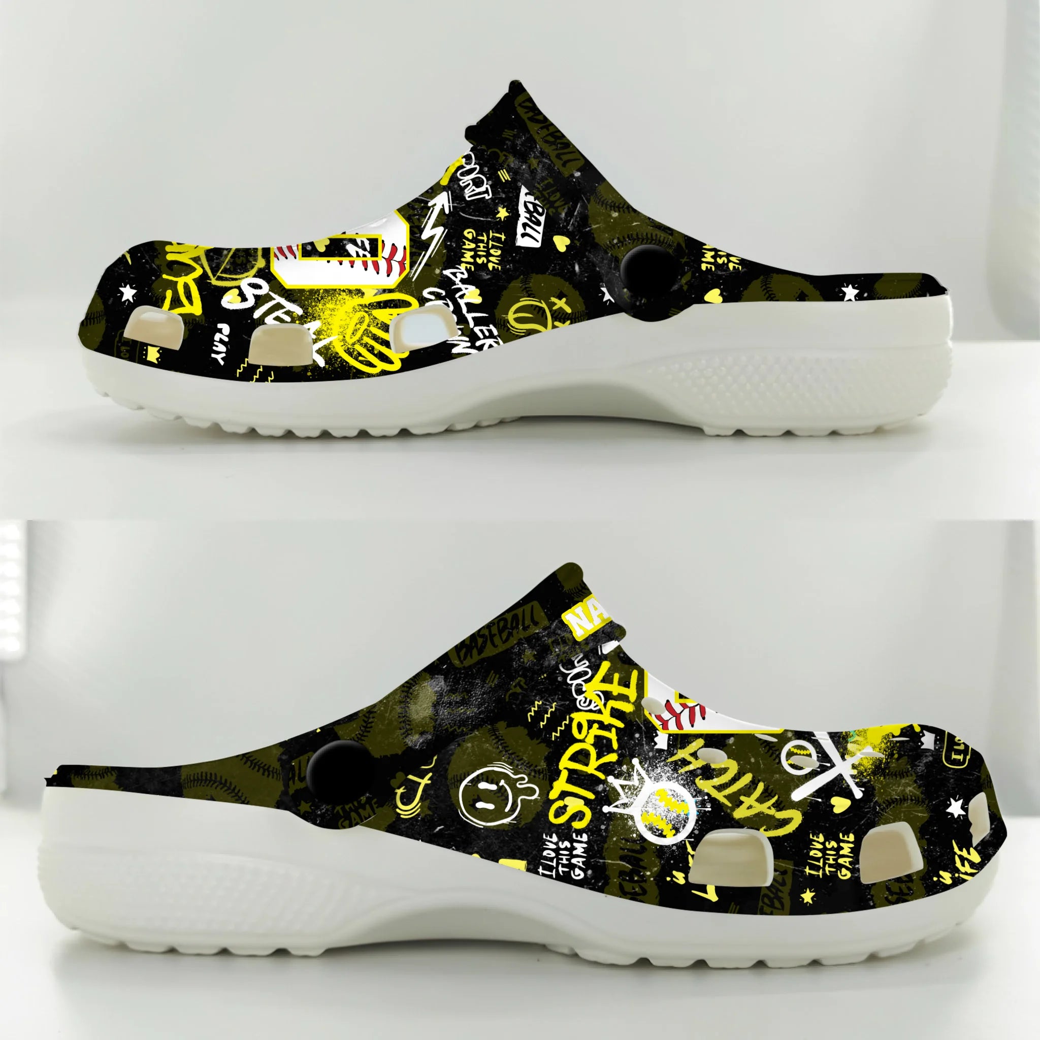 Yellow Tag Out Baseball Sport Custom Crocs And Clogs Shoes Printed For Men Women And Kids