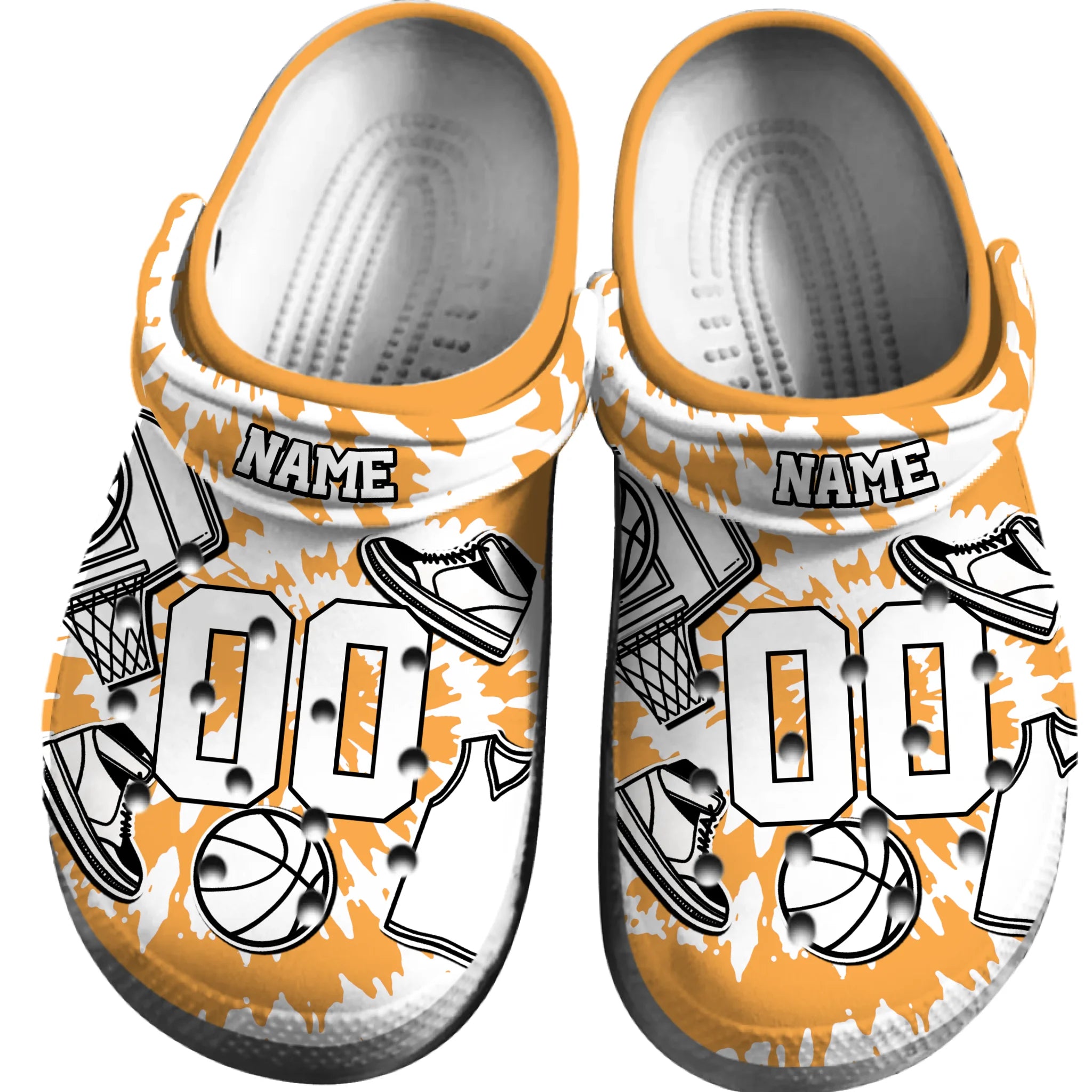 Yellow Tie-Dye Basketball Sport Custom Crocs And Clogs Shoes Printed For Men Women And Kids