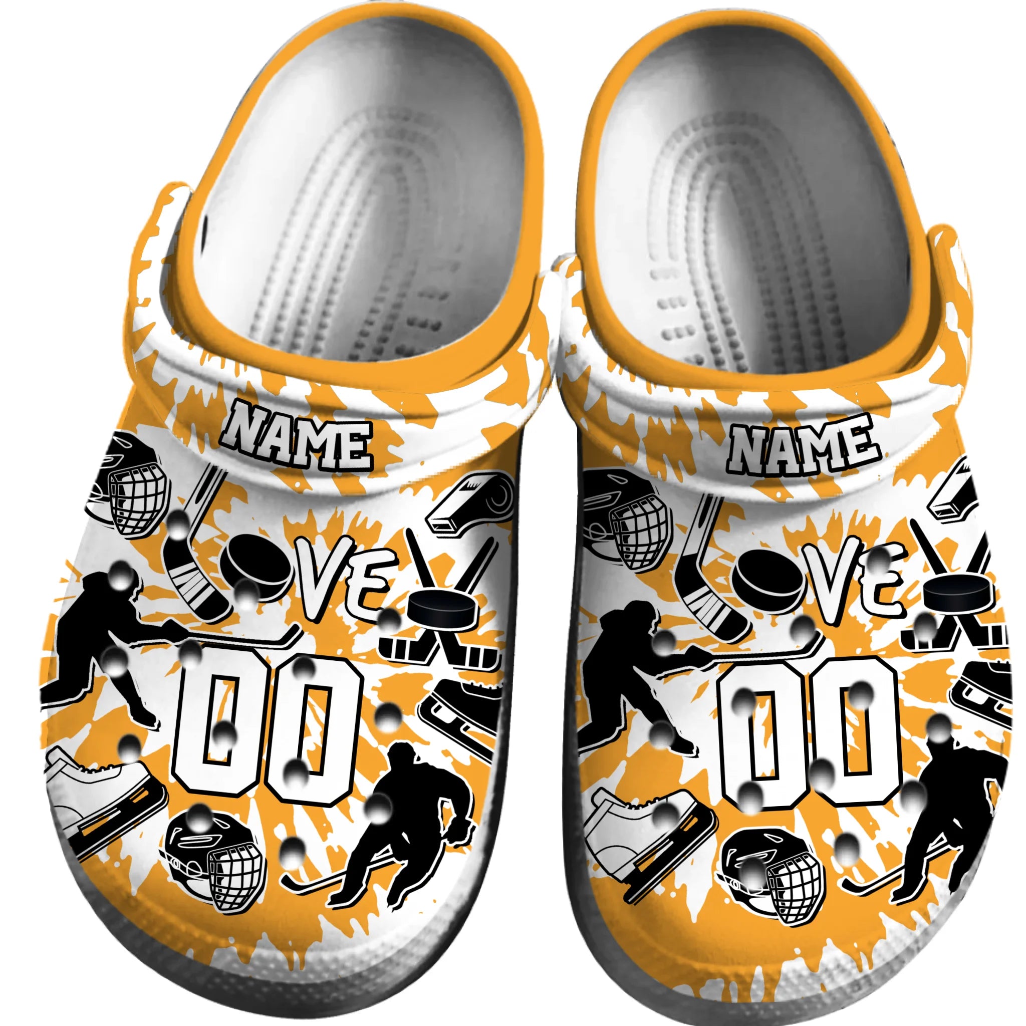 Yellow Tie-Dye Ice Hockey Sport Custom Crocs And Clogs Shoes Printed For Men Women And Kids