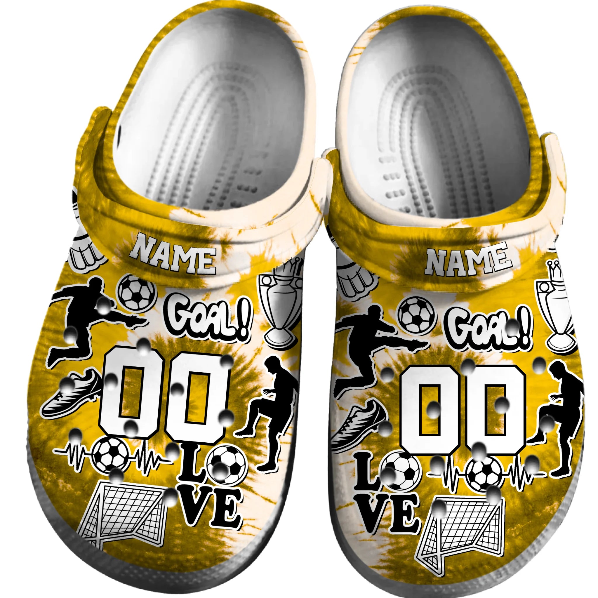 Yellow Tie-Dye Soccer Sport Custom Crocs And Clogs Shoes Printed For Men Women And Kids