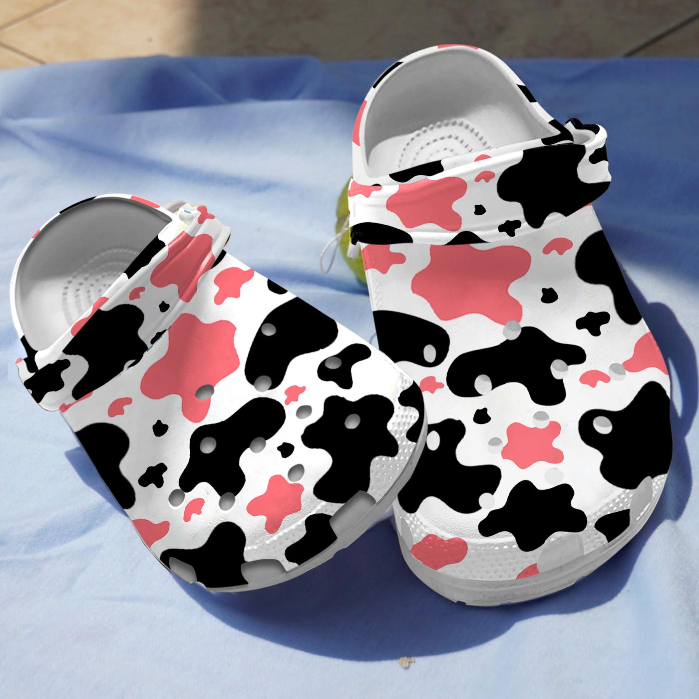 Cows Black And Pink Cowhide Pattern Crocs
