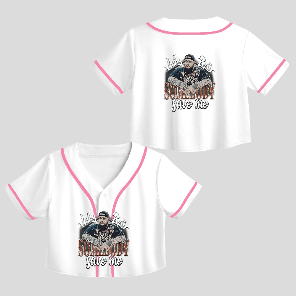 Jelly Roll Music Somebody Save Me Cowhide Crop Top Baseball Jersey