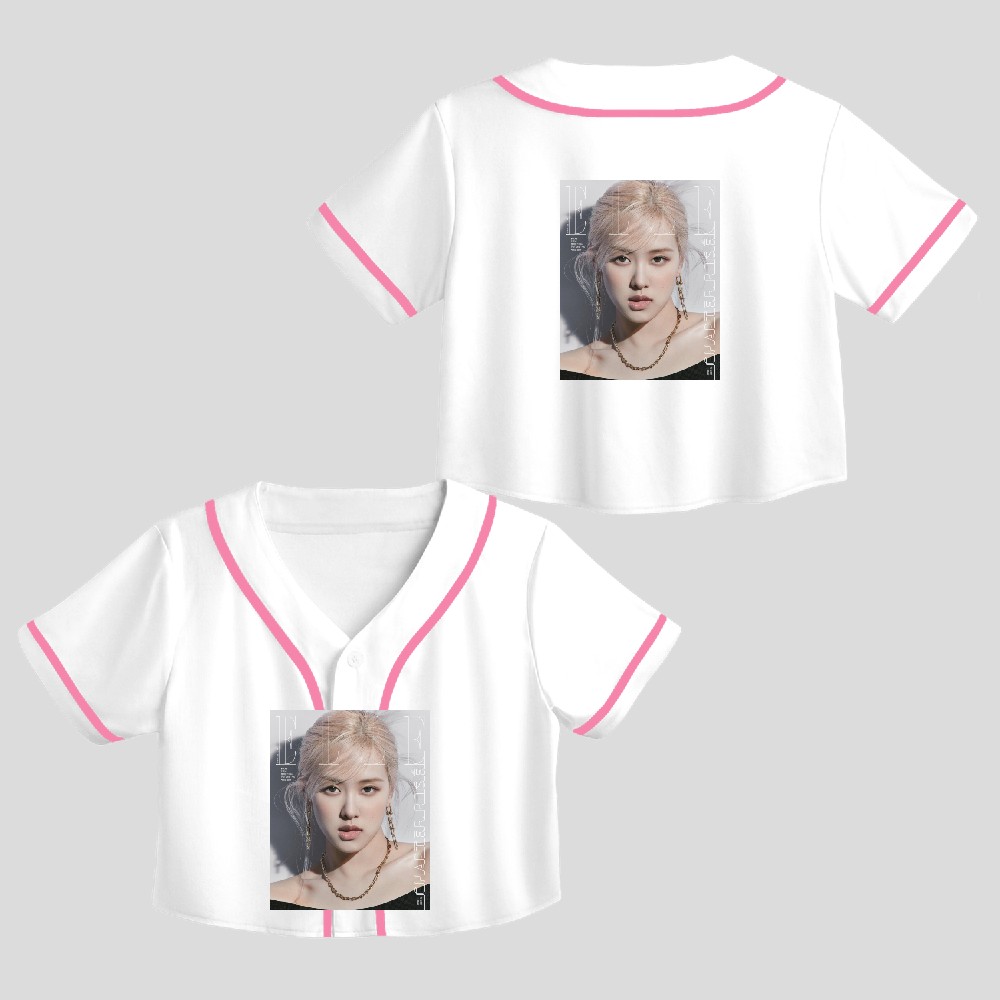Juneissue Korea Elle Rose Blackpink Crop Top Baseball Jersey