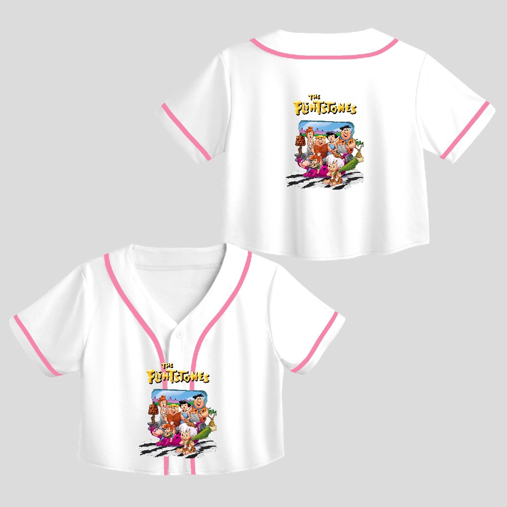 The Flintstones Fred Bamm Bamm Rubble Family Crop Top Baseball Jersey