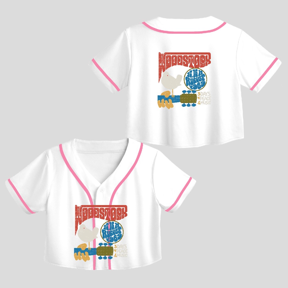 Woodstock Music Festival 1969 Crop Top Baseball Jersey