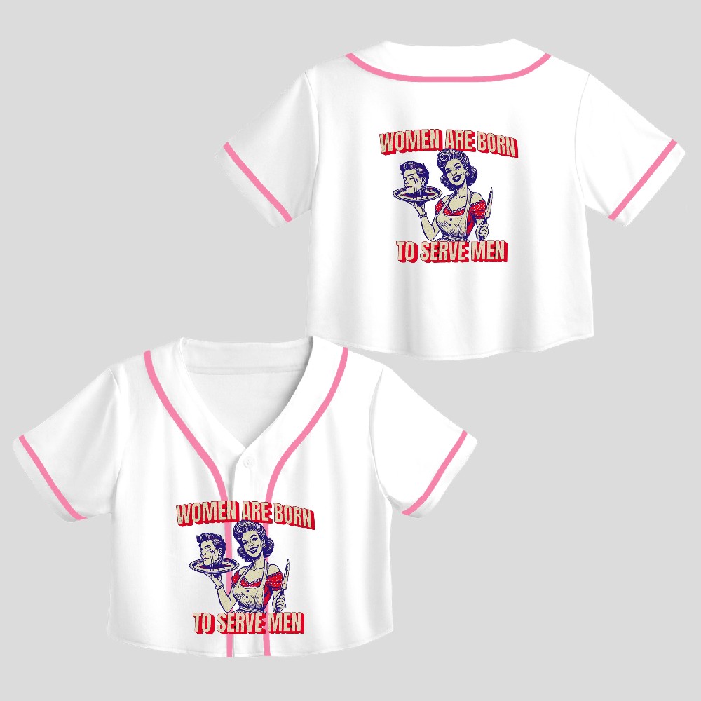 Women Are Born To Serve Men Feminism Crop Top Baseball Jersey