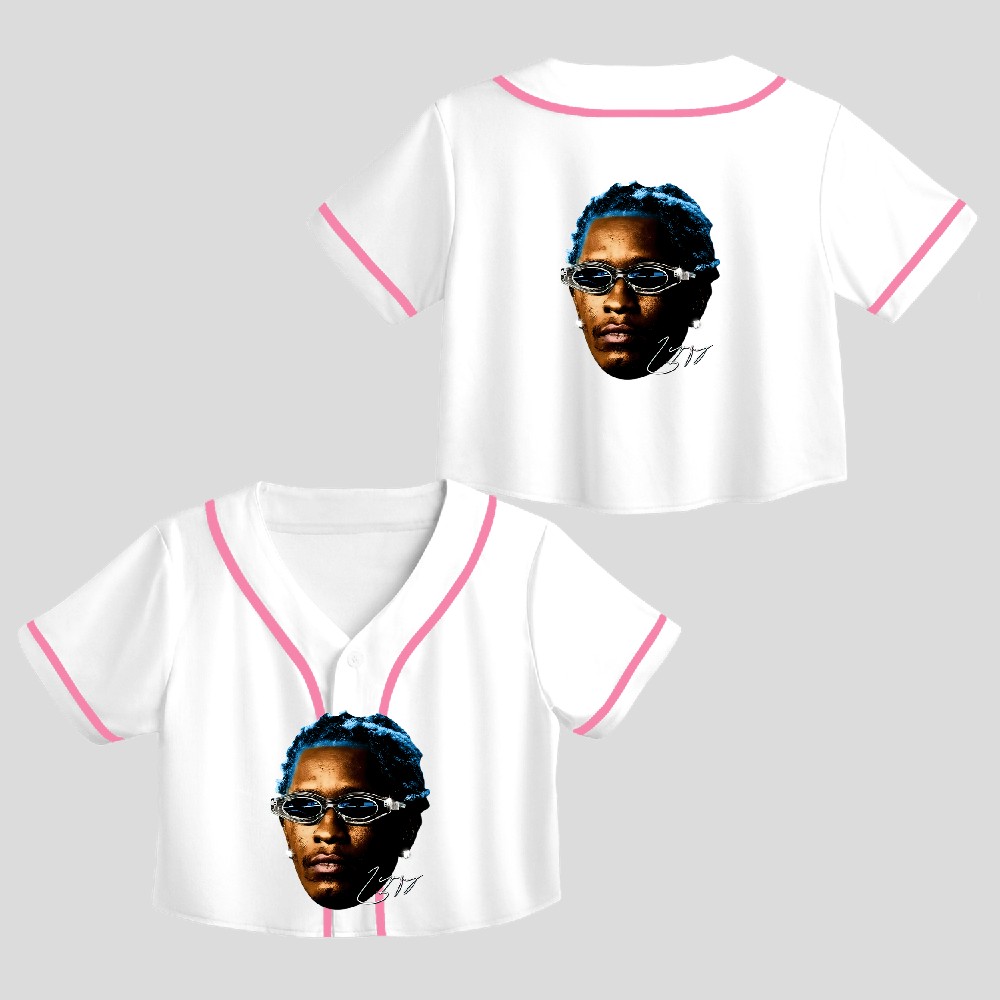 Young Thug Blue Rare Hip Hop Crop Top Baseball Jersey