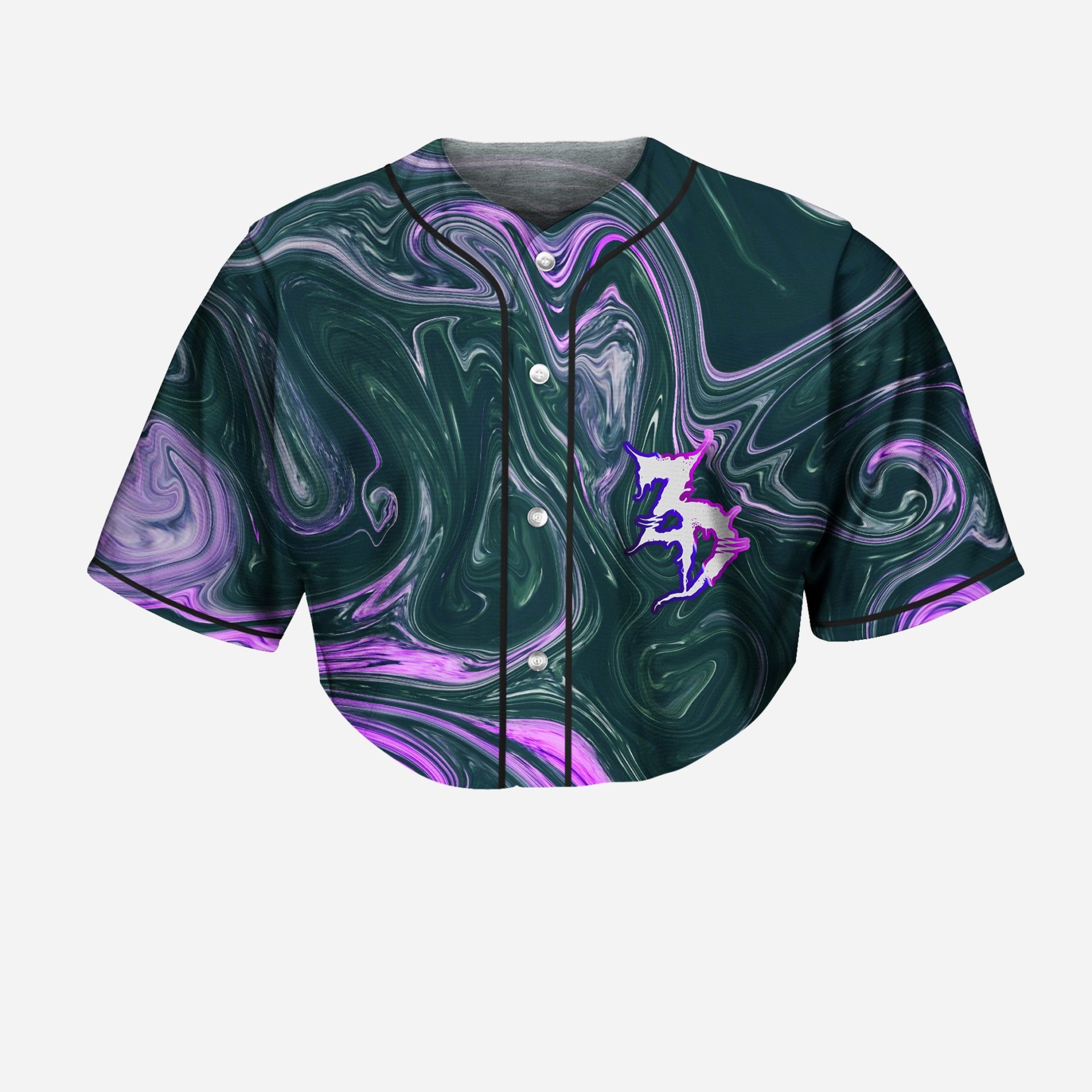 Zeds Dead X Purple Oil Slick Crop Top Baseball Jersey
