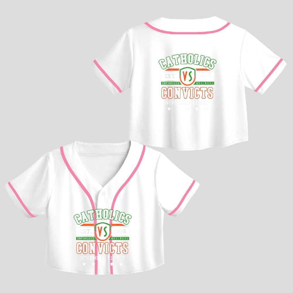 Catholics Vs Convicts Crop Top Baseball Jersey