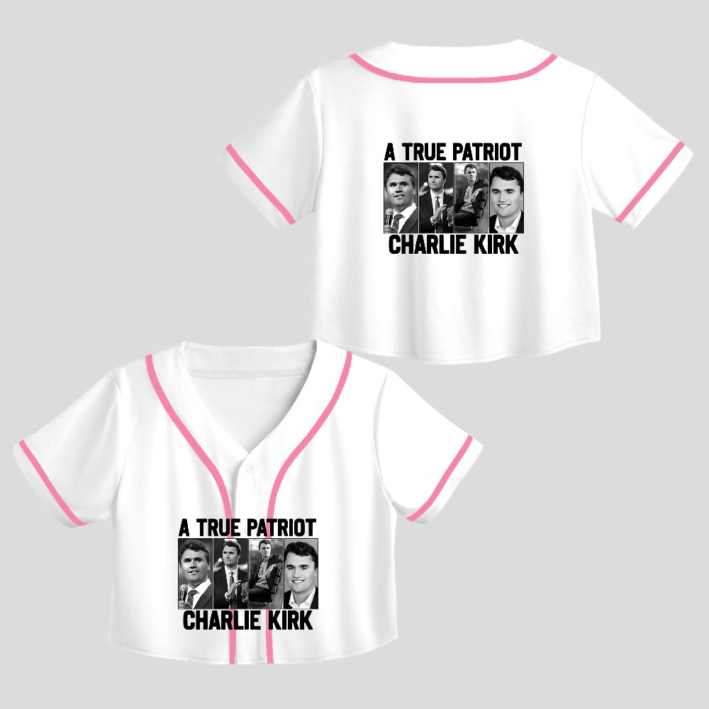 Charlie Kirk Conservative Activist Crop Top Baseball Jersey